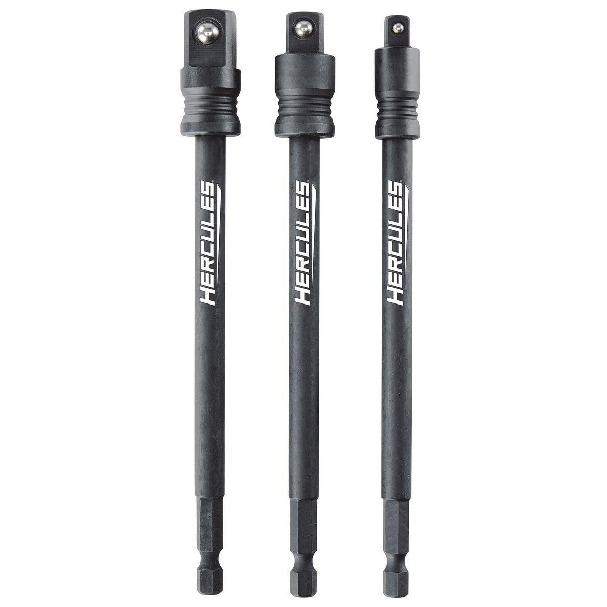 Heavy duty Hercules® Impact Rated 6 in. Socket Drivers are designed with the TorqPoint™ Shock Absorbent Zone so that you can use your impact sockets with a standard drill/driver or impact driver. These extra long 6 in. adapters are designed to reach into tight spots. The adapters are constructed with advanced metallurgy to stand up to heavy use in impact tools. Quick change 1/4 in. hex shanks. Black oxide coating increases durability and prevents corrosion.