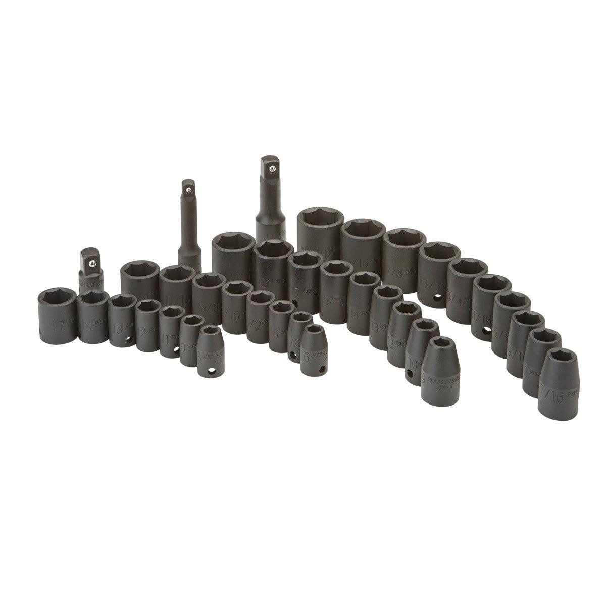 3/8 in., 1/2 in. Drive SAE & Metric Impact Socket Set, 37 Pc.