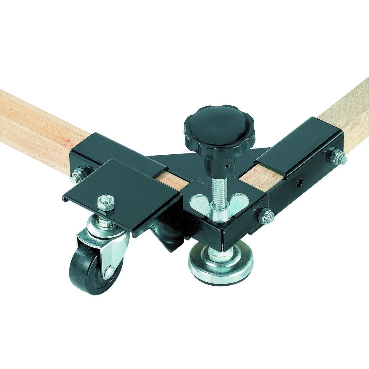 Make your stationary equipment mobile with this sturdy wheeled base. The 300 Lb. Capacity Mobile Base is ideal for use with table saws, disc sanders or other heavy equipment. The base’s steel construction provides support and stability while two 2 in. swivel caster and two 3 in. wheels allow you to smoothly maneuver equipment around your workspace with ease.