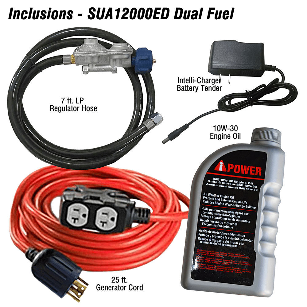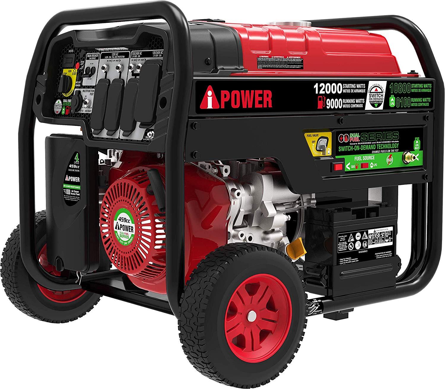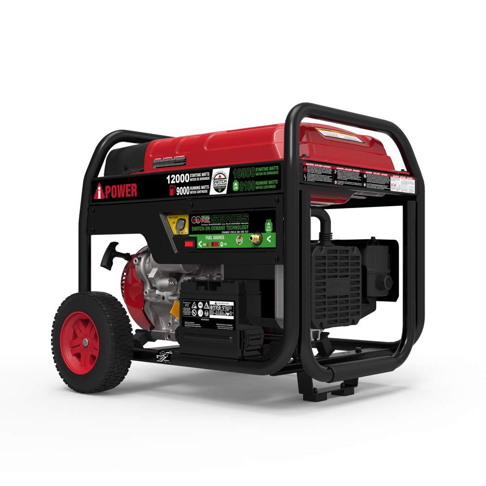 A-iPower SUA12000ED 12000-Watt Hybrid Dual Fuel Portable Generator Propane or Gas EPA/CARB, Black