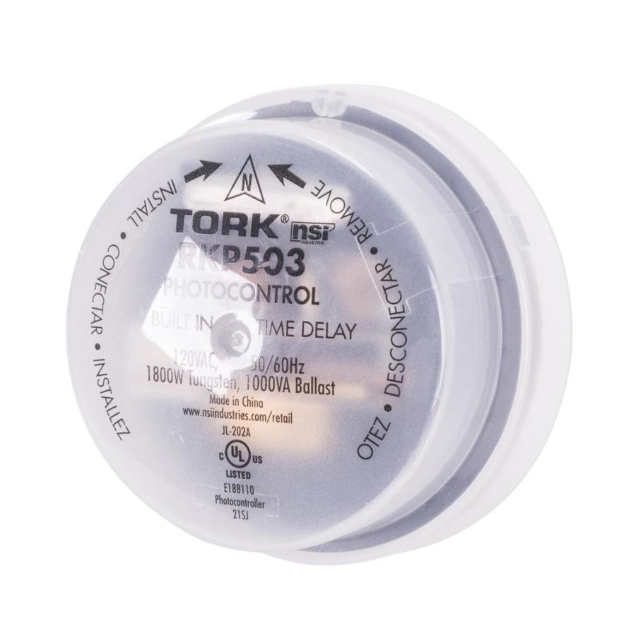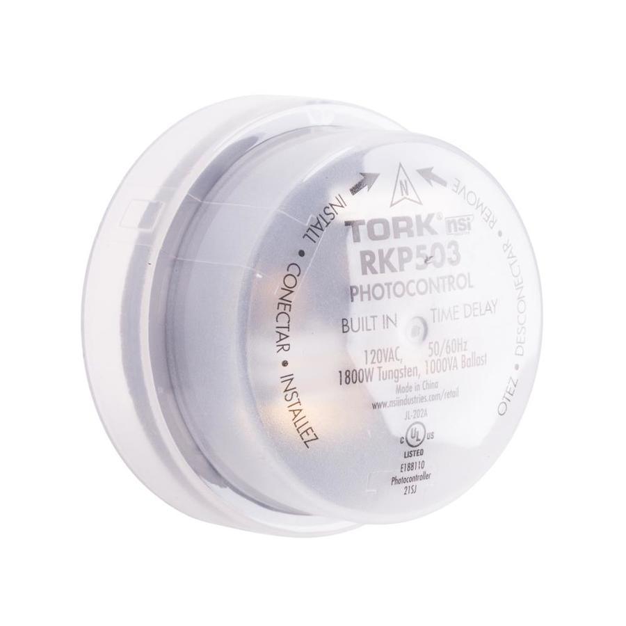120 Volt twist lock photocell Turns lights on at dusk and off at dawn Energy savings by reducing operating time 1800 W tungsten, 1100VA ballast