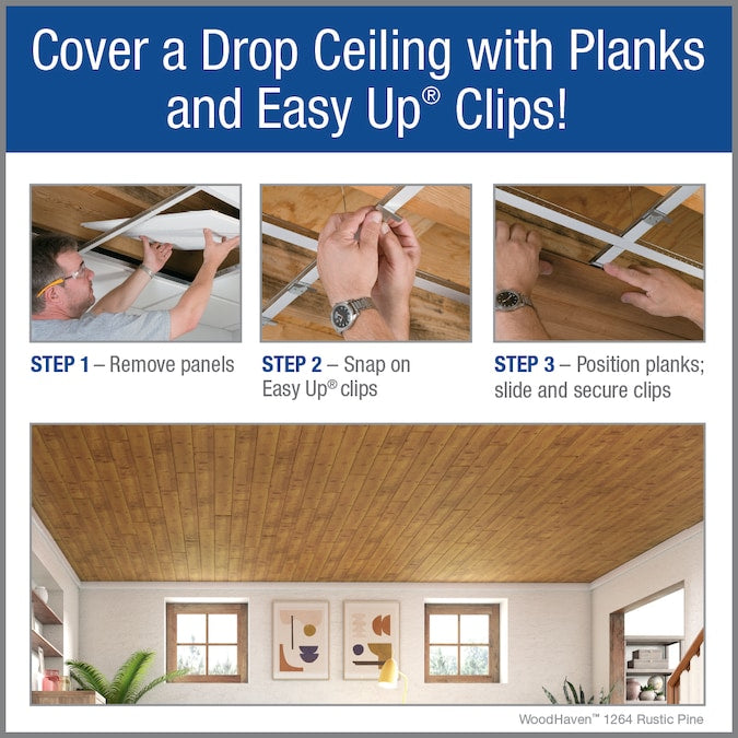 Achieve a flawless ceiling finish with the Easy Up Ceiling Clip, designed to effortlessly install Armstrong ceiling tiles or planks. These clips offer superior holding and stability, eliminating the hassles of warped wood furring strips. Transform any room's ceiling securely and seamlessly.