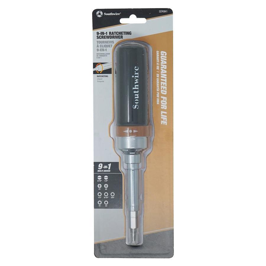 Southwire 9-IN-1 9-Piece Rubber Handle Ratcheting Multi-Bit Screwdriver