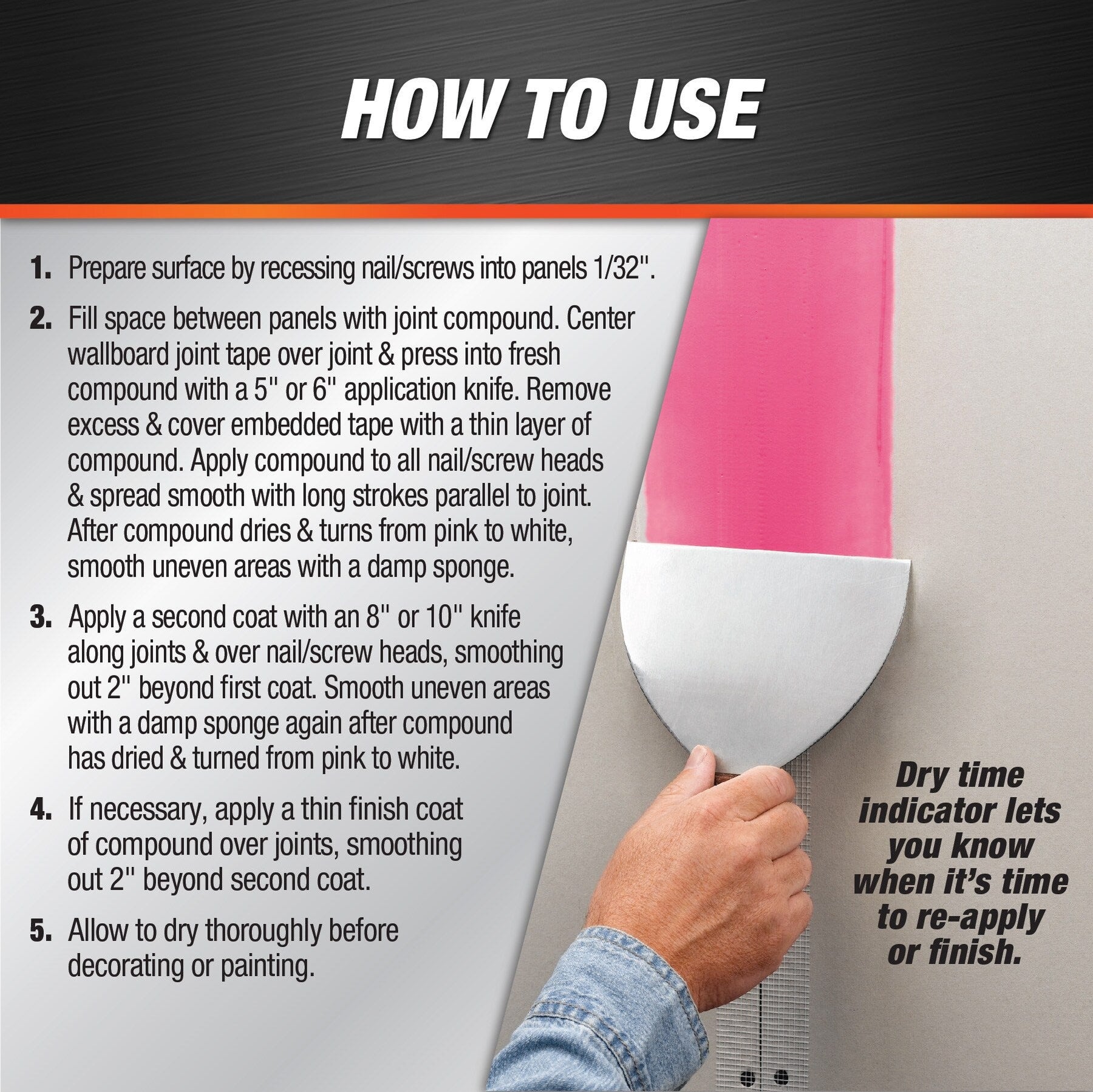 A: The DryDex goes on pink and dries white, indicating it's ready for sanding and painting once it turns white.