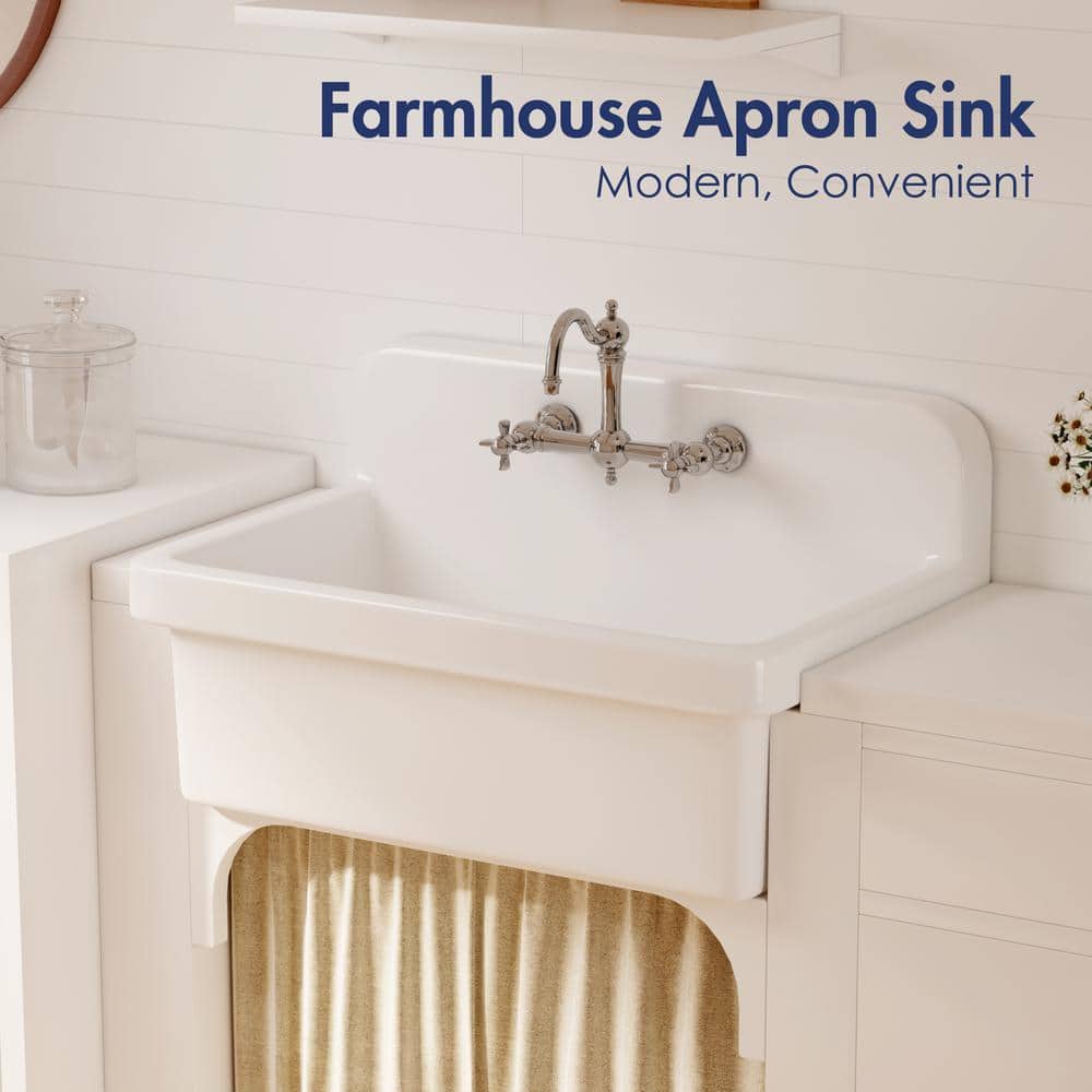 A: The crisp white finish and classic farmhouse design ensure that the sink integrates seamlessly with a variety of decor styles.