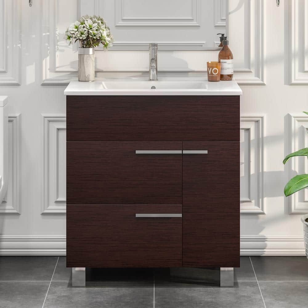 Eviva Cup 31.50 in. W x 18 in. D x 34 in. H Bath Vanity in Wenge (Dark Brown) with White Ceramic Top with White Sink