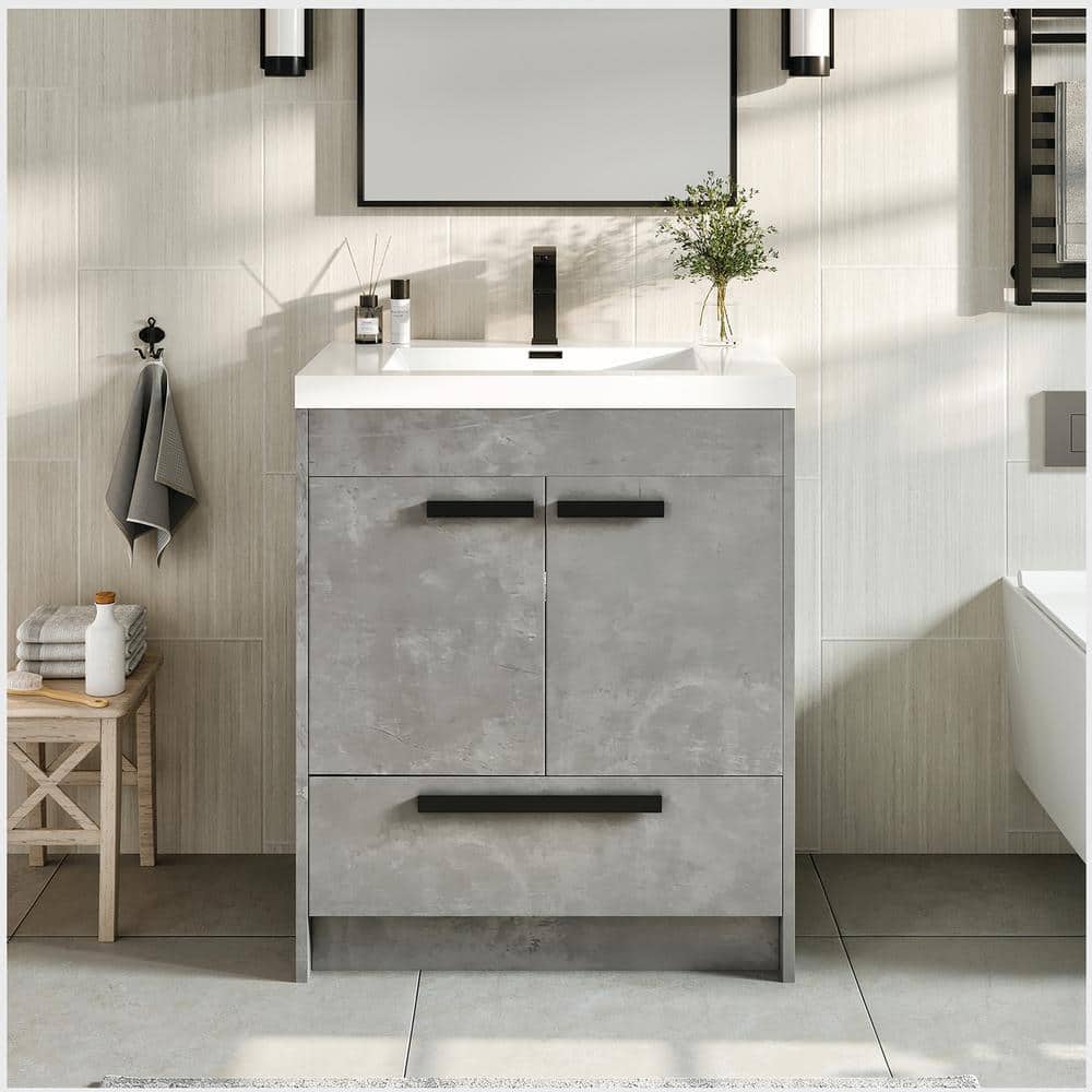 Eviva Lugano 30 in. W x 19 in. D x 36 in. H Single Bath Vanity in Cement Gray with White Acrylic Top and White Integrated Sink