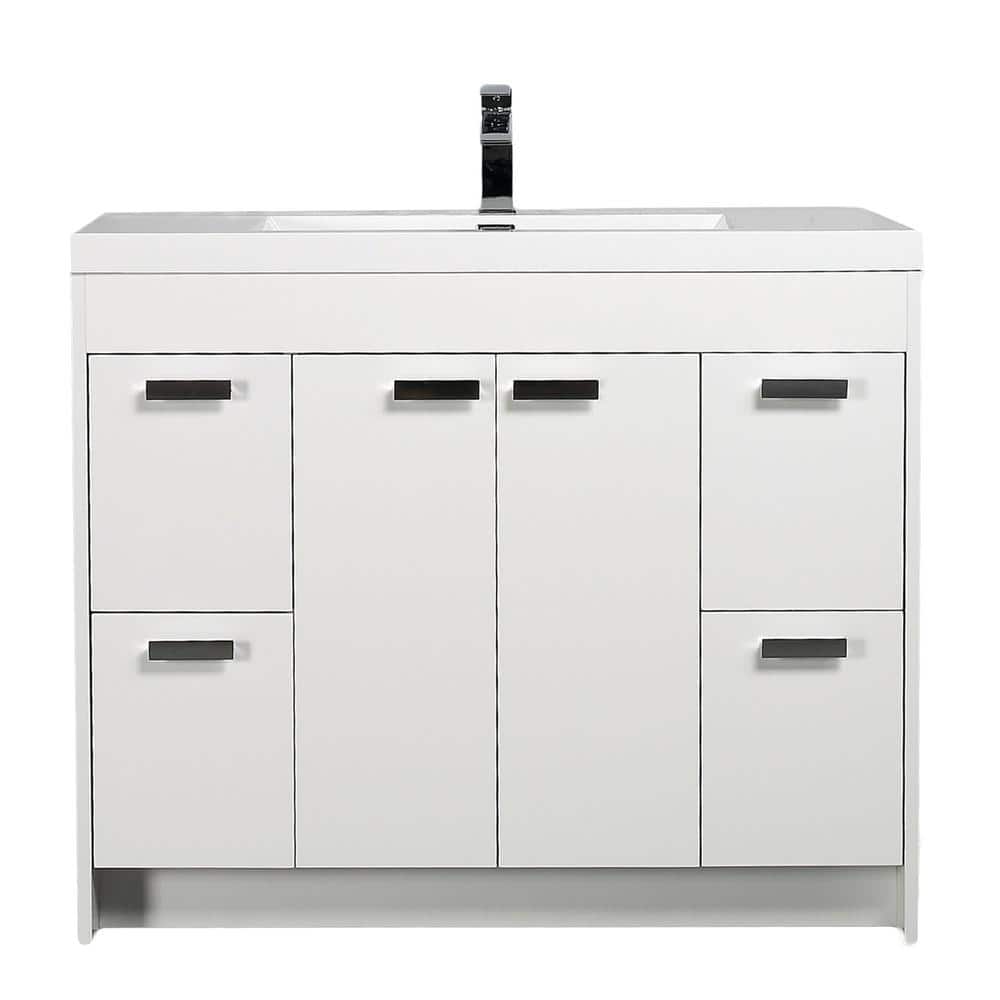 Eviva Lugano 42 in. W x 19 in. D x 36 in. H Single Bath Vanity in White with White Acrylic Top and White Integrated Sink
