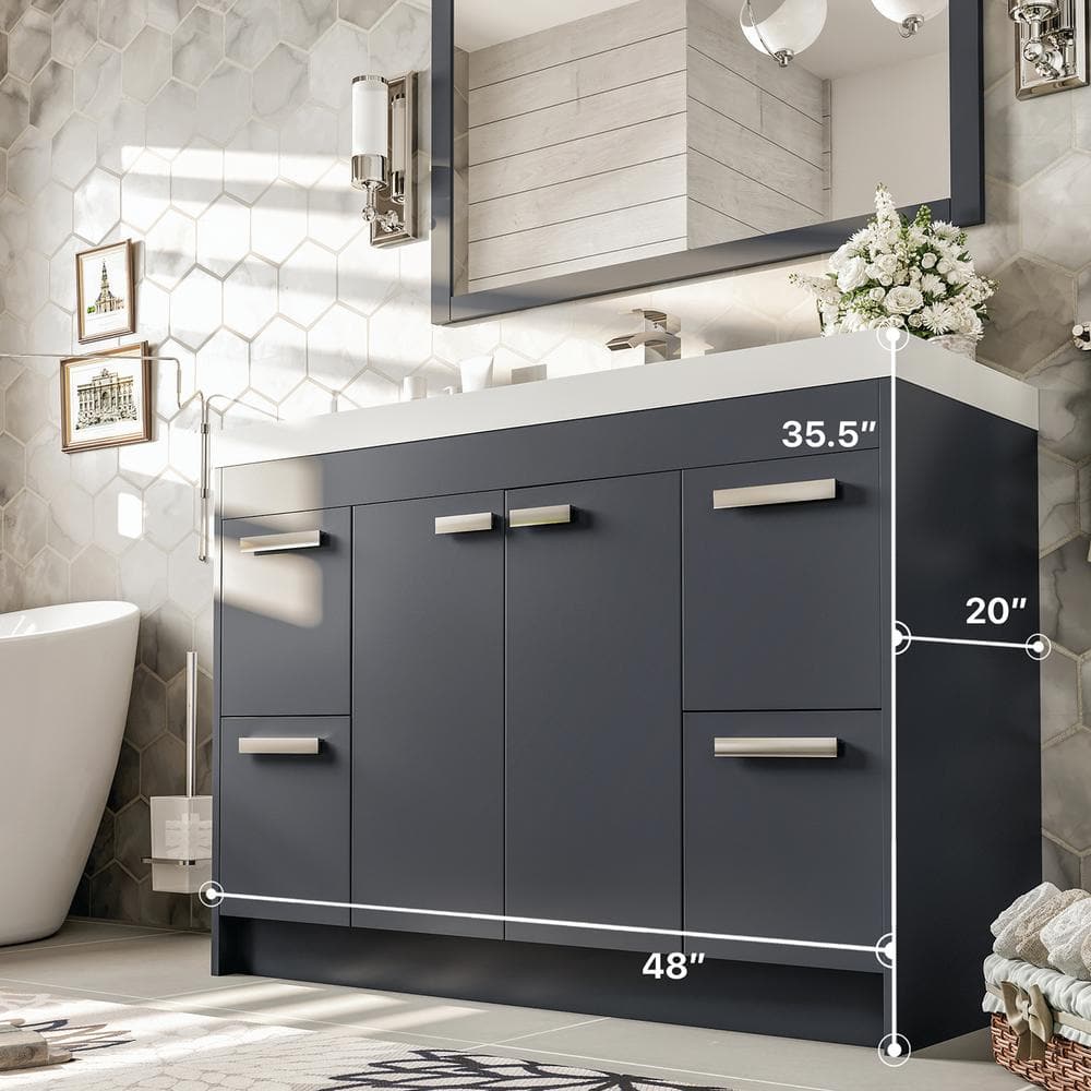 A: Yes, with its 48-inch width, the vanity is ideal for medium to large bathrooms, providing plenty of countertop and storage space.