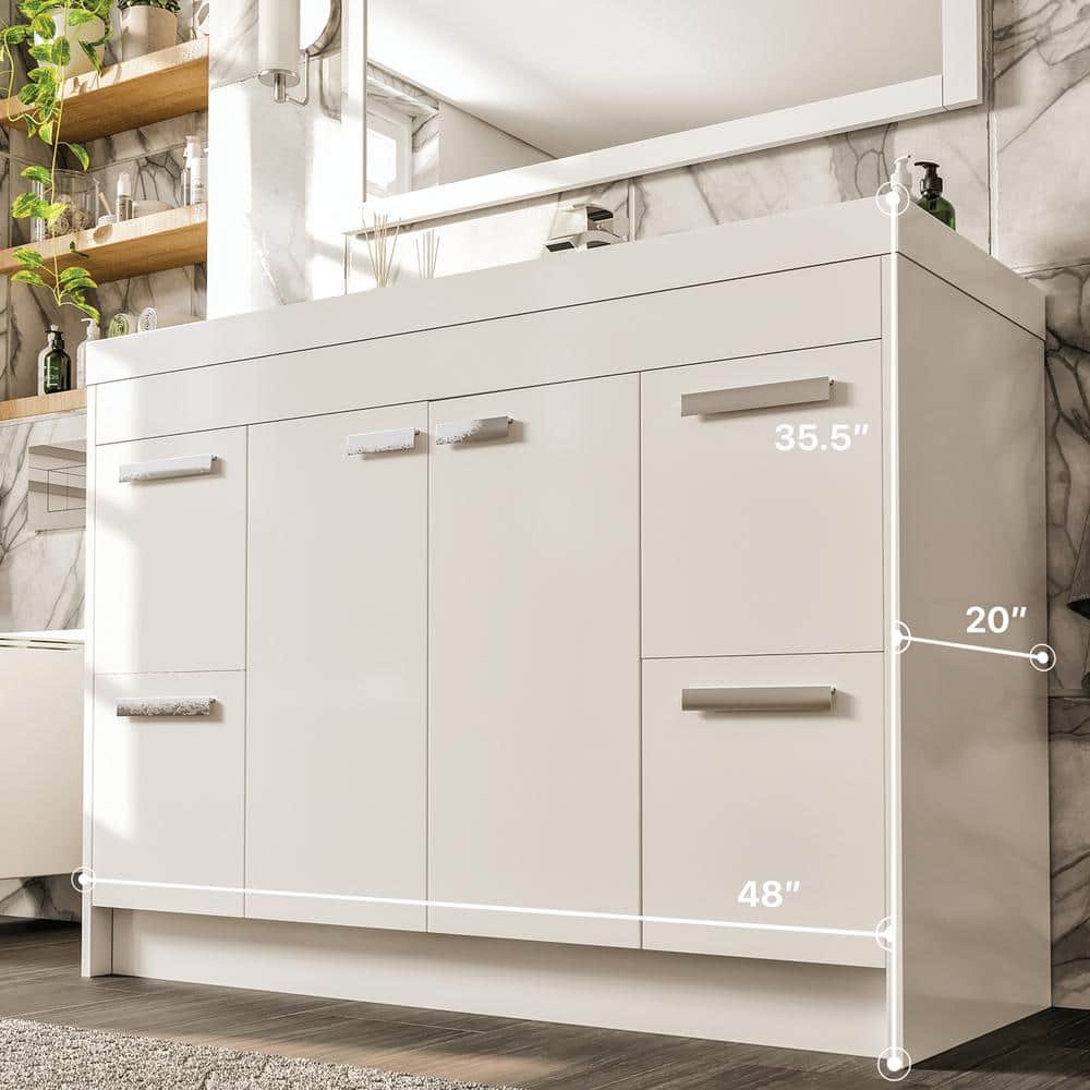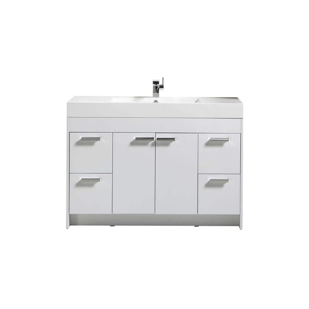Eviva Lugano 48 in. W x 20 in. D x 36 in. H Single Bathroom Vanity in White with White Acrylic Top with White Integrated Sink