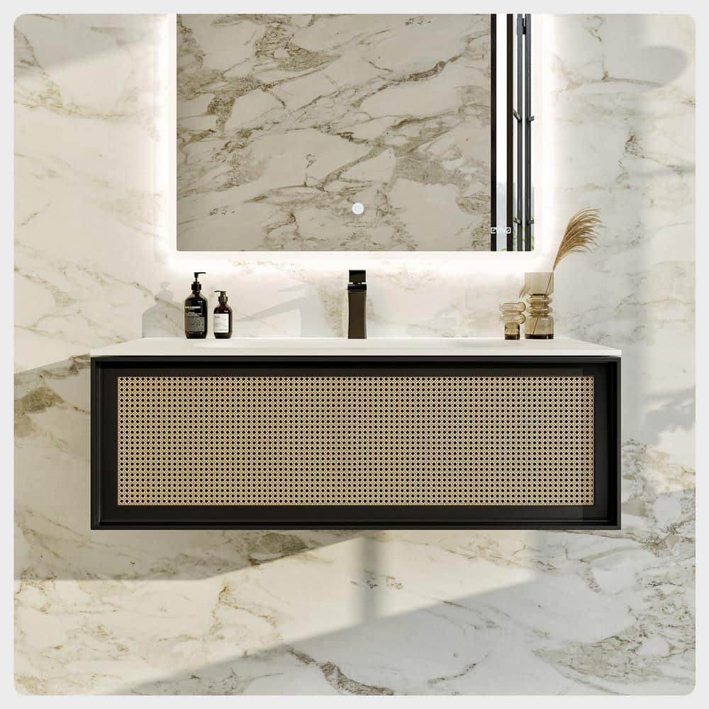 Eviva Nets 44 in. W x 14 in. D x 21 in . H Floating Bathroom Vanity in Black with White Solid Surface Top
