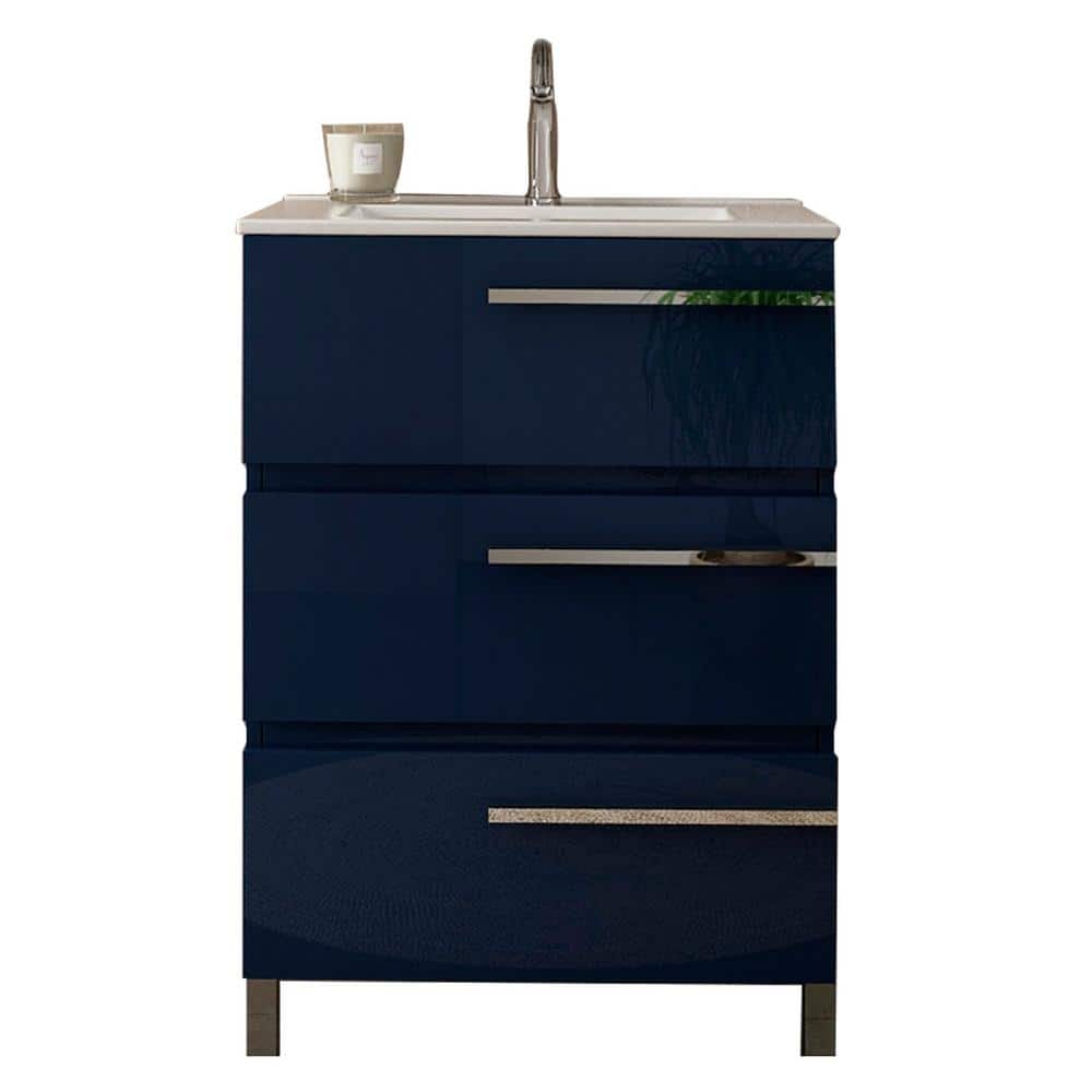The Eviva Olivia Blue 24-Inch Bath Vanity is a chic and compact solution for small bathrooms, combining modern style with functionality. Its vibrant blue finish and sleek stainless steel legs offer a fresh twist on traditional vanity designs, while a durable porcelain sink ensures hassle-free maintenance.