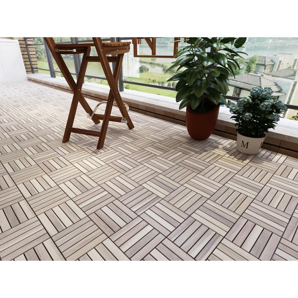 Interbuild 1 ft. x 1 ft. Interlocking Solid Hardwood Acacia Deck Tile in Organic White (10-Piece per Carton - 10 sq. ft.)