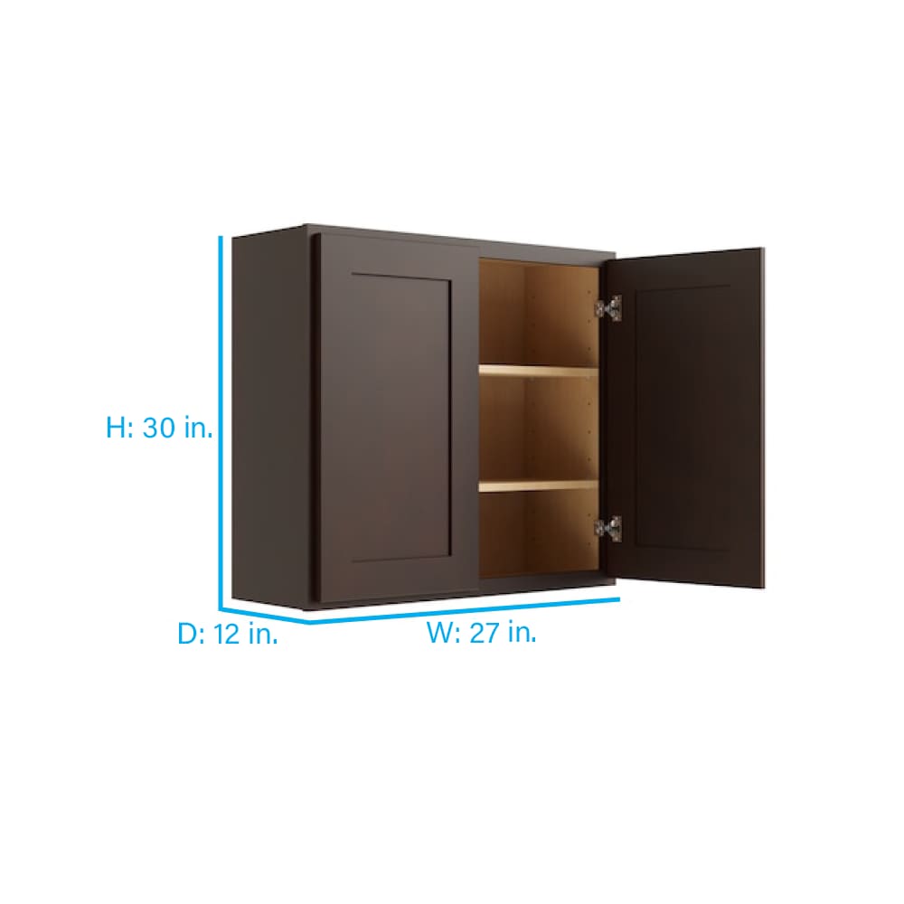 RELIABILT Parkstone 27-in W x 30-in H x 12-in D Espresso Wall Fully Assembled Plywood Cabinet (Shaker Door Style)
