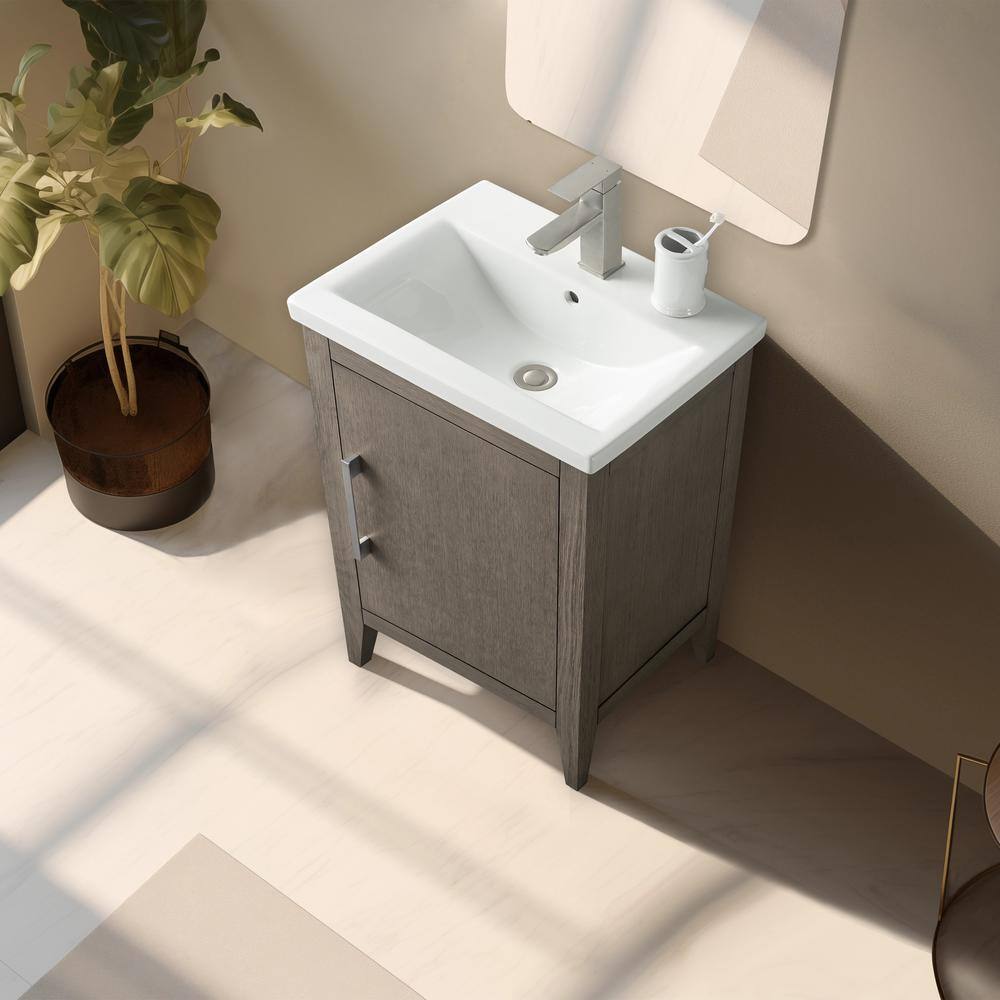 Elevate your bathroom's style with the Vanity Art Driftwood Gray Bathroom Vanity, featuring a crisp ceramic top and a durable poplar wood construction. This fully assembled vanity arrives ready to install, offering a seamless blend of aesthetics, functionality, and long-lasting quality.