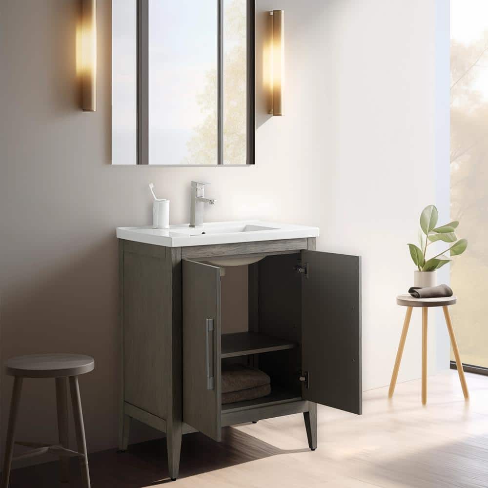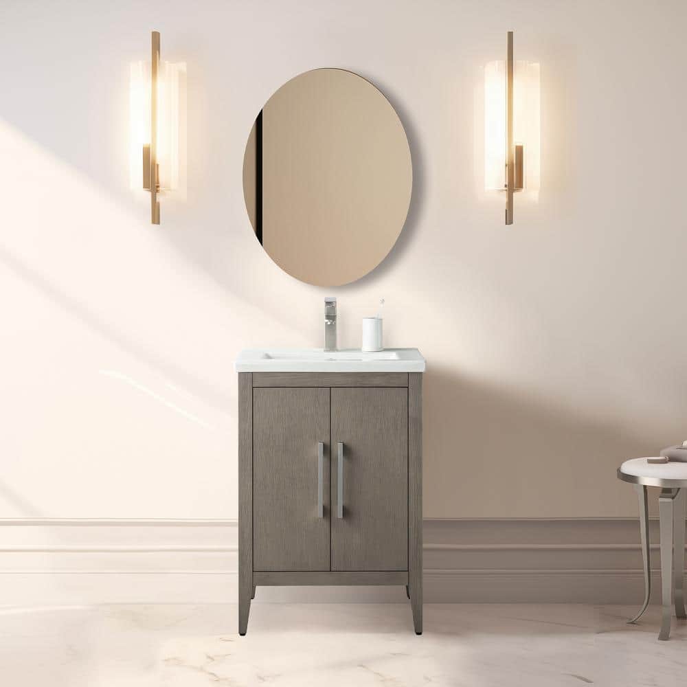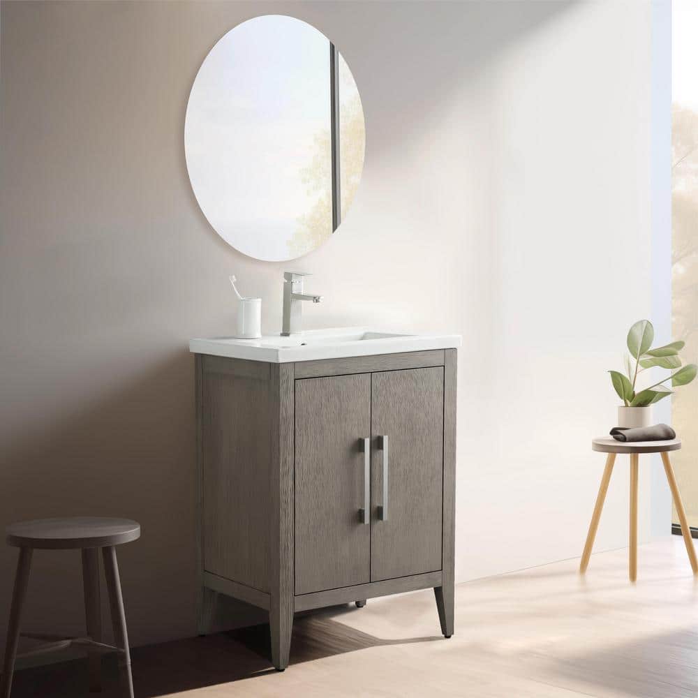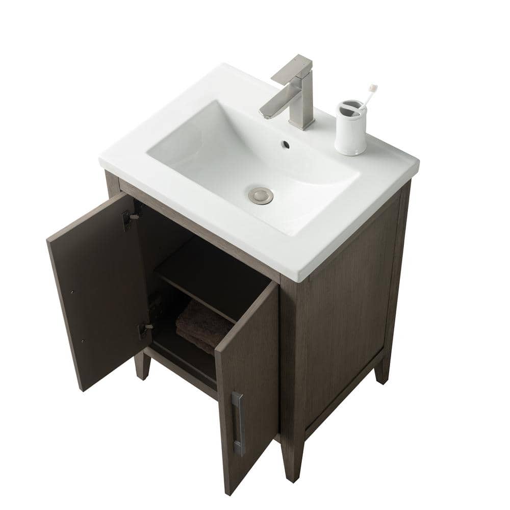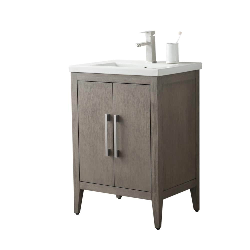 Transform your bathroom with the elegant and functional Vanity Art 24" Bathroom Vanity Cabinet in a chic Driftwood Gray finish. Featuring a ceramic top with a seamless undermount sink, it offers generous storage and an easy-to-clean surface, making it a perfect blend of style and practicality.