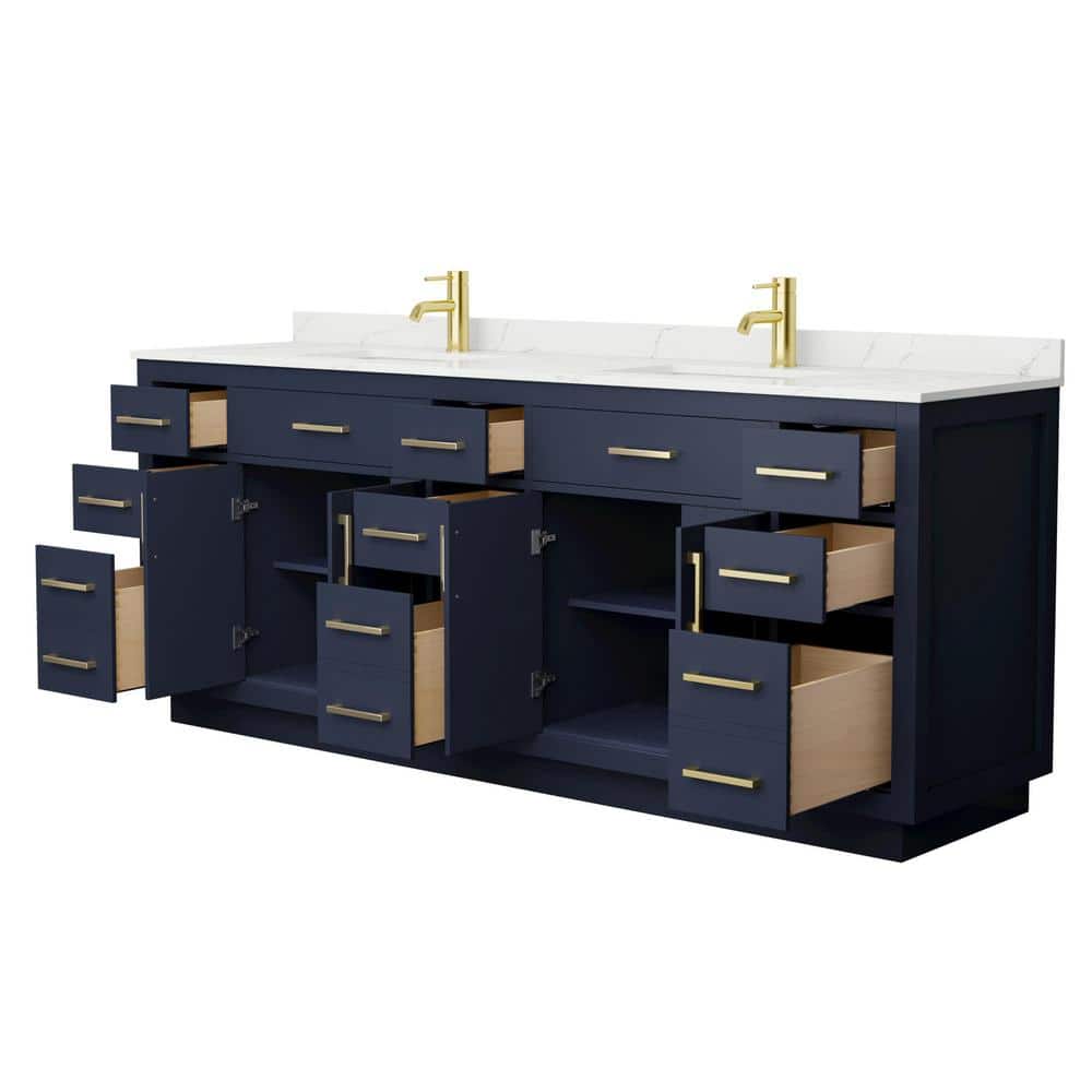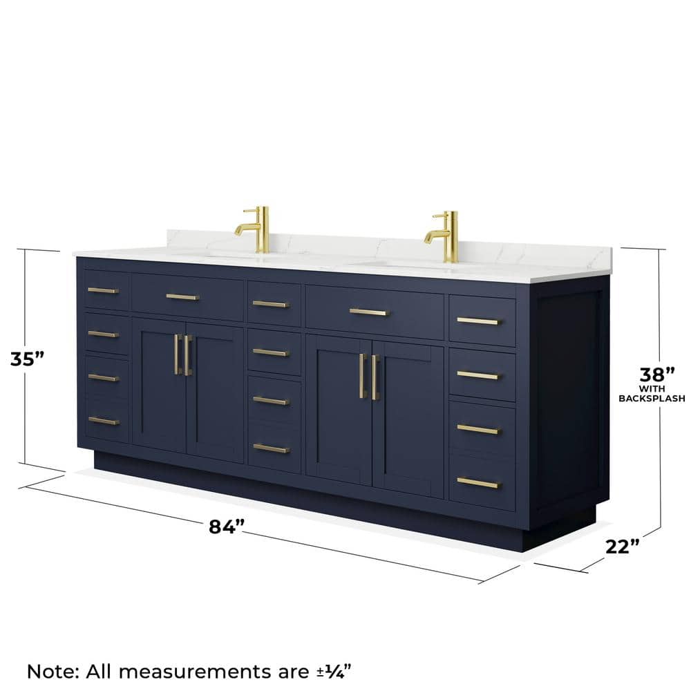 The Beckett TK Vanity is a masterpiece of design and functionality. Its dark blue finish, accented with brushed gold trim, creates a striking focal point in any bathroom. The Giotto quartz countertop adds a touch of luxury, while the ample storage ensures practicality. Pair it with gold or white accessories to complete the look, making it an essential addition to a refined and stylish bathroom.