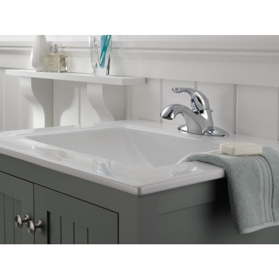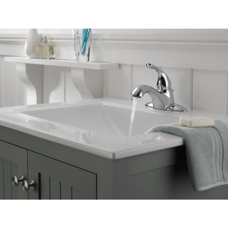 Getting ready in the morning is far from routine when you Single lever handle for ease of control Fast, tool free installation and increase mounting depth to 2.5-in Chrome, a cool, high-gloss finish Delta faucets last up to five million uses with DIAMOND Seal Technology valve WaterSense certified to promote water conservation A hidden cache aerator adds an aesthetic element to the enhanced design of the faucet Fits standard 4-in installation Meets standards set by Americans with Disabilities Act