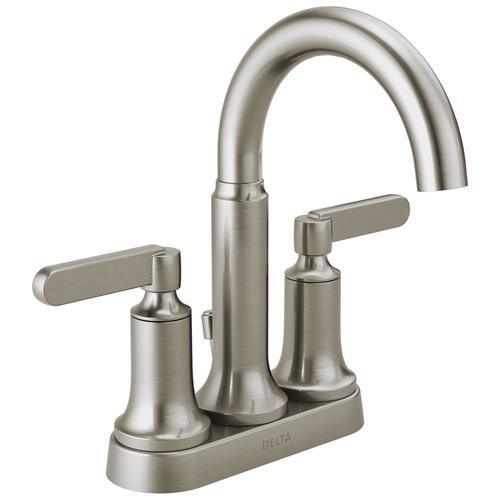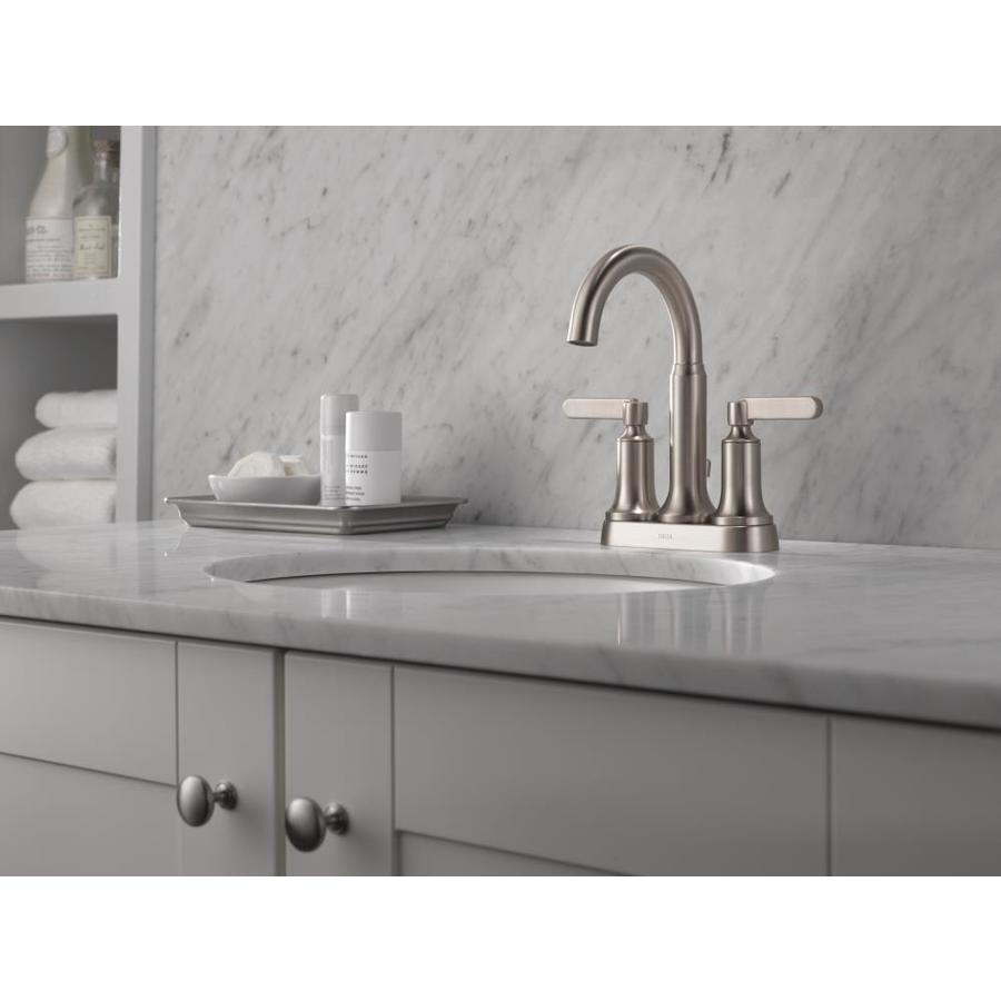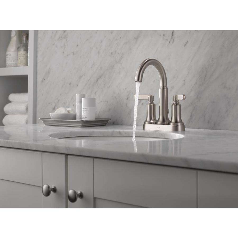Delta Alux Spotshield Brushed Nickel 2-handle 4-in Centerset WaterSense Bathroom Sink Faucet with Drain