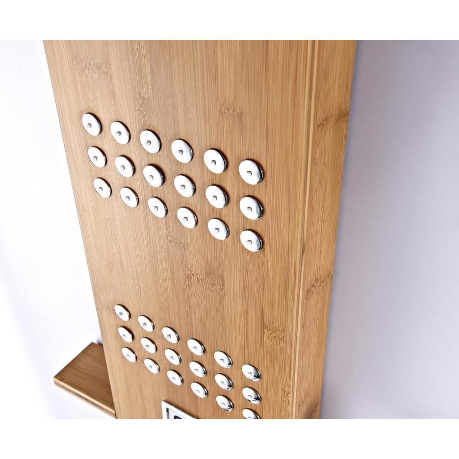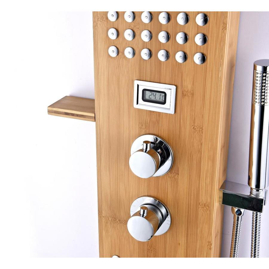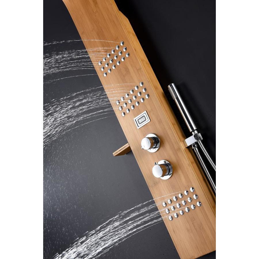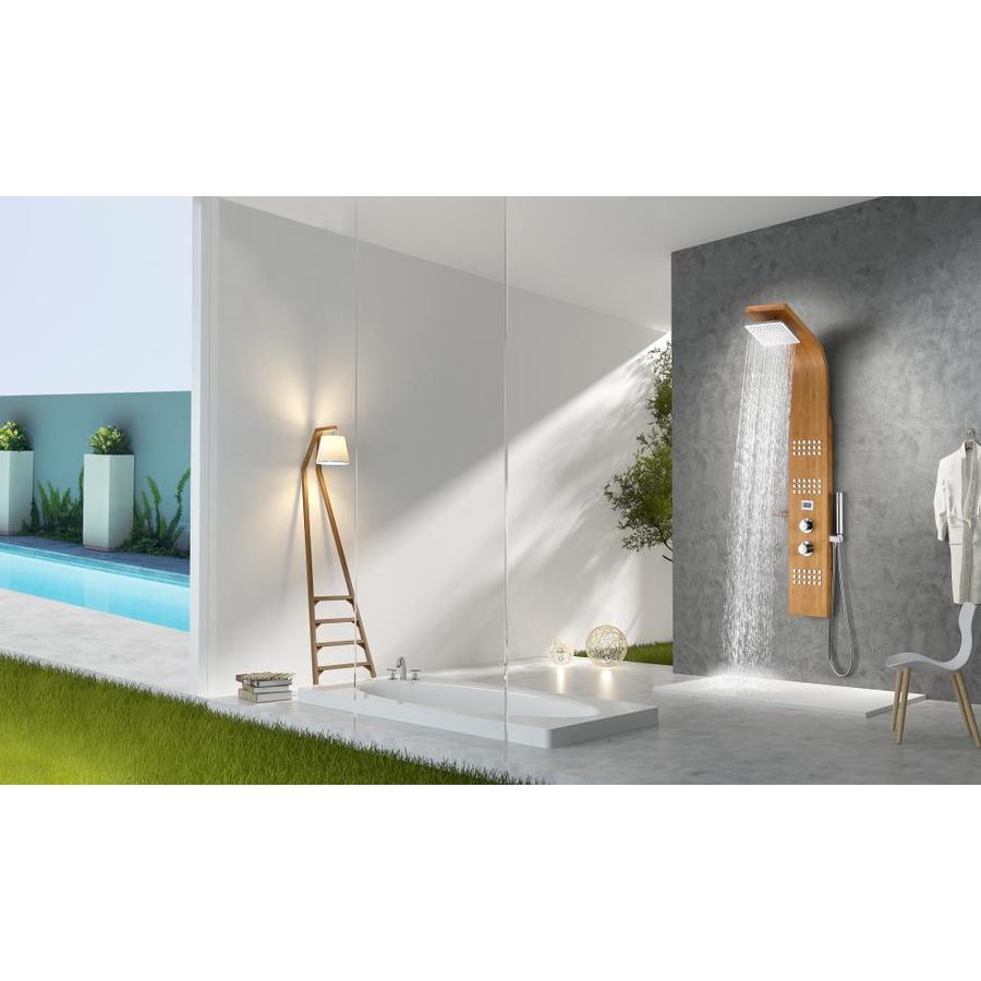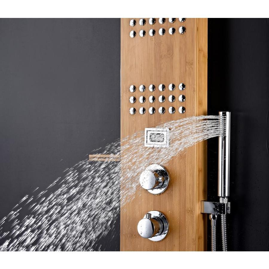 Includes one (1) Crane full body shower panel with matching shelf, one (1) Heavy Rain shower head, three (3) Acu-Stream body jet sets, thermo-sensitive digital temperature display, one (1) euro-grip free range hand sprayer, one (1) owner's manual