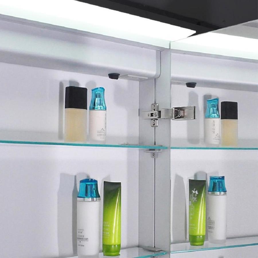LED mirror medicine cabinet provides additional storage space Frameless style with surface mount design offers a clean look, LED light on bottom of cabinet Aluminum frame with MDF back panel and IR sensor switch single Installation instructions and installation bracket included, hardware included LED mirror only, all other items not included