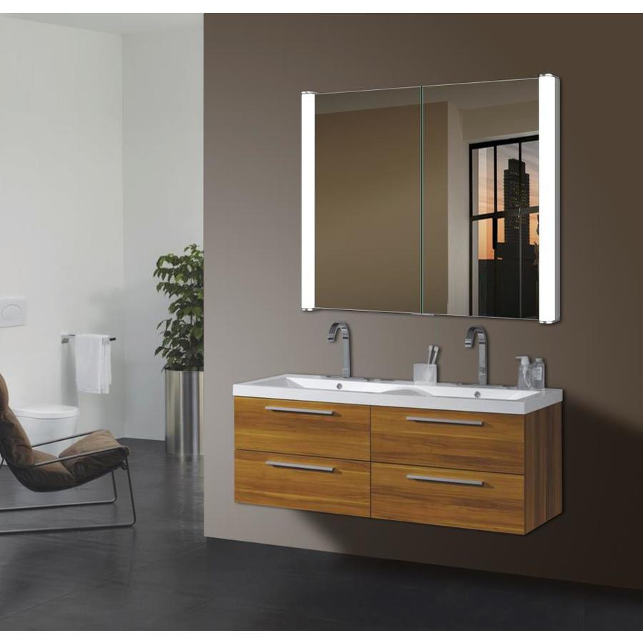 LED mirrored medicine cabinet provides additional storage room Frameless style with cabinet design offers a clean look, LED light on 2 sides of cabinet Aluminum frame with MDF back panel, cabinet with double sided mirror doors and IR sensor switch Installation instructions included, hardware included LED mirror only, all other items not included
