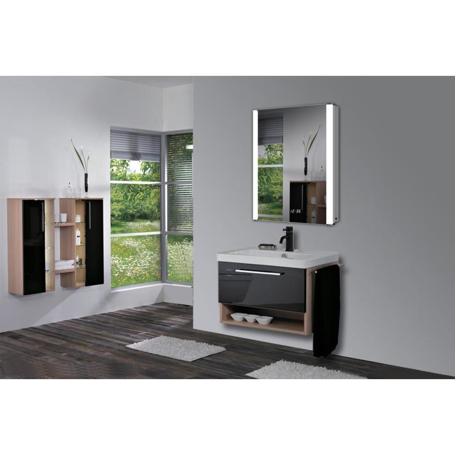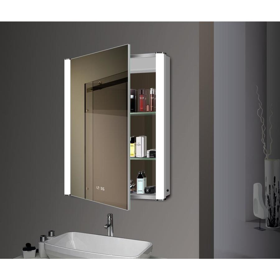 LED mirror medicine cabinet provides additional storage space Aluminum frame, LED lights on sides of cabinet LED light on inside of cabinet with rocker switch Installation instructions included LED mirror only, all other items not included