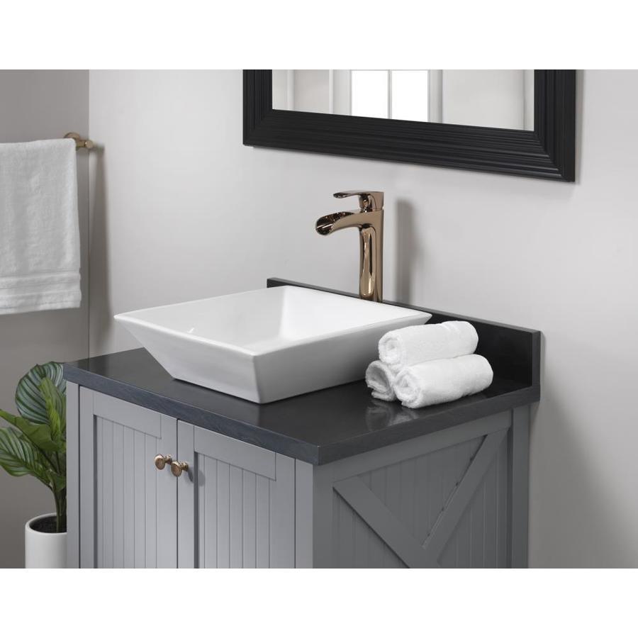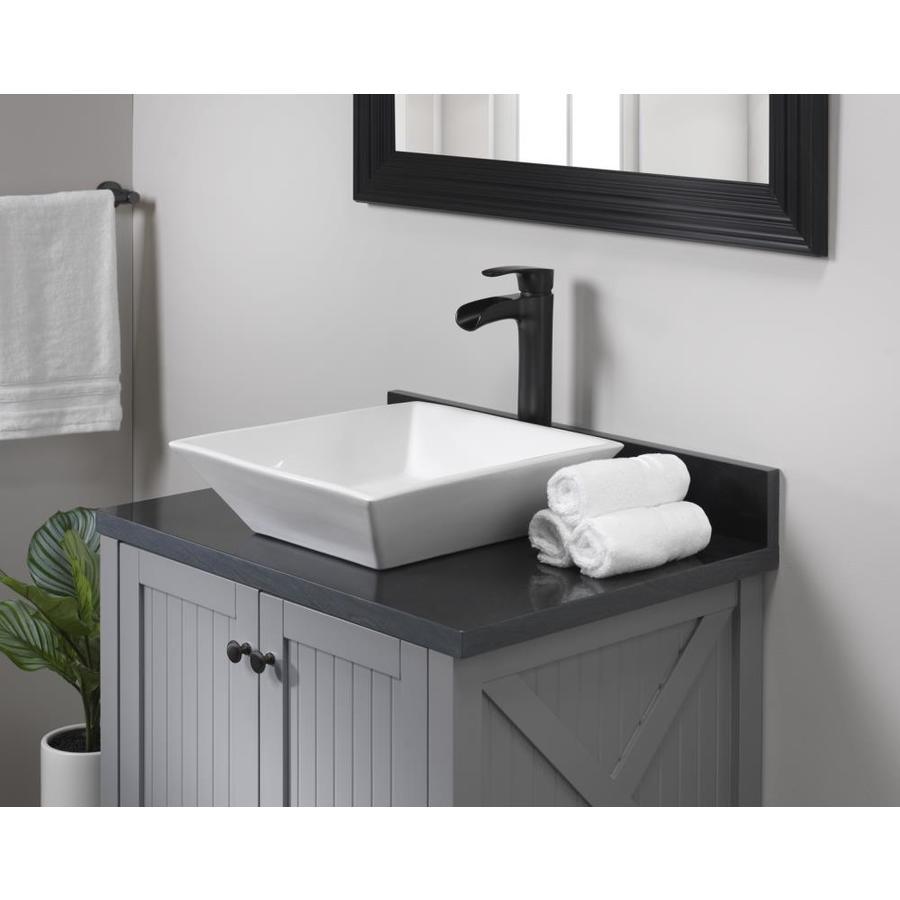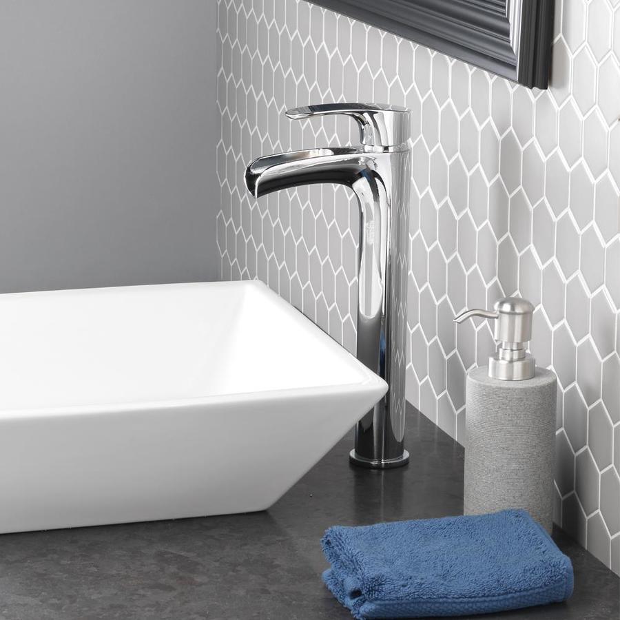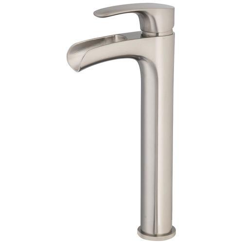 Waterfall vessel filler faucet from Jacuzzi Fixed grid drain without overflow holes included Brushed nickel finish 1.2 GPM flow rate meets or exceeds EPA WaterSense standards All hot and cold waterlines and mounting hardware included Long, durable life with solid brass construction and brushed nickel finish Faucet installation hole should measure between 1.3 and 1.5 inches, grid drain installation hole should measure between 1.57 and 2.12 inches ADA compliant Faucet fits sink holes between 1.3 in. and 1.5 in. in diameter
