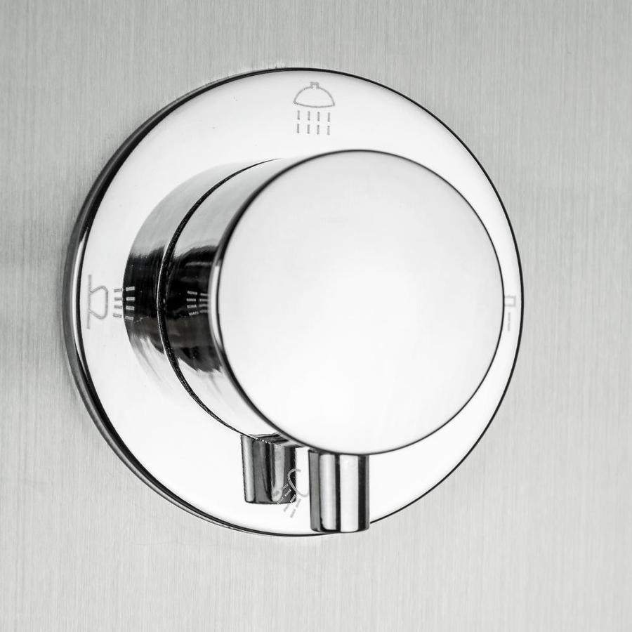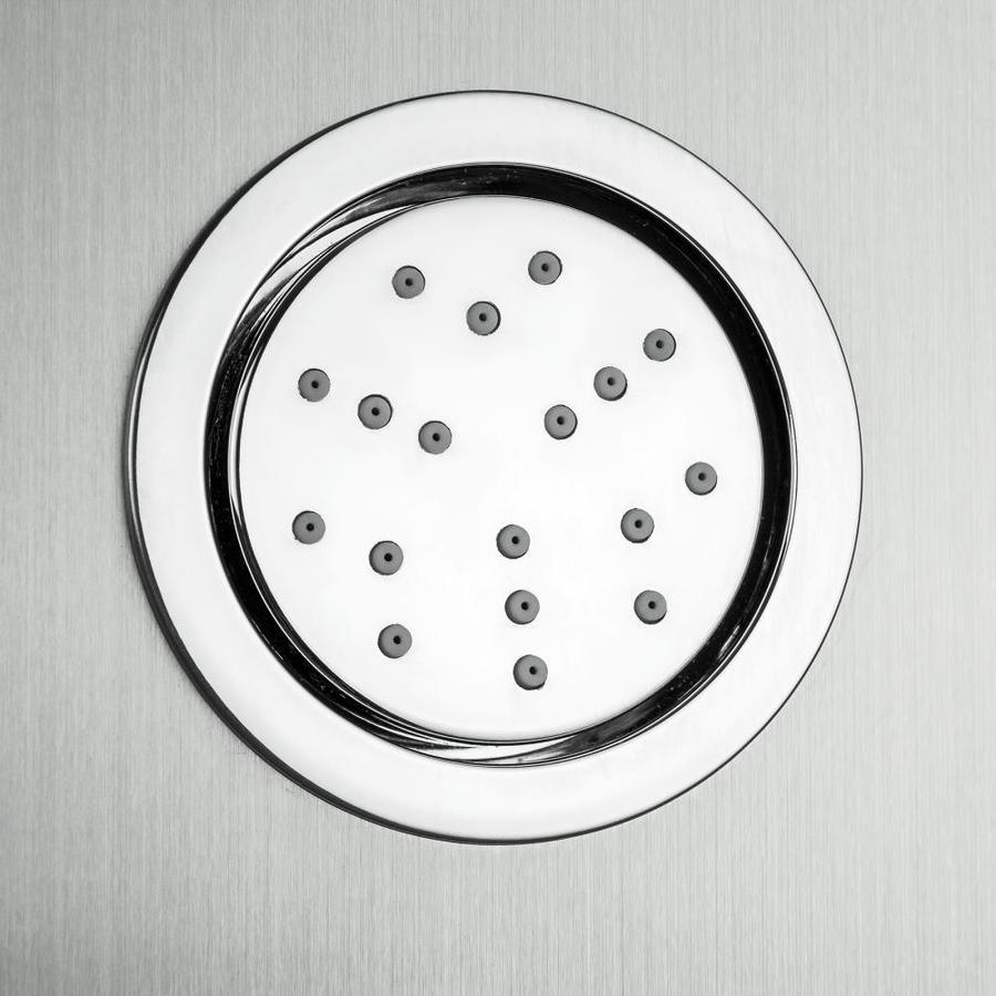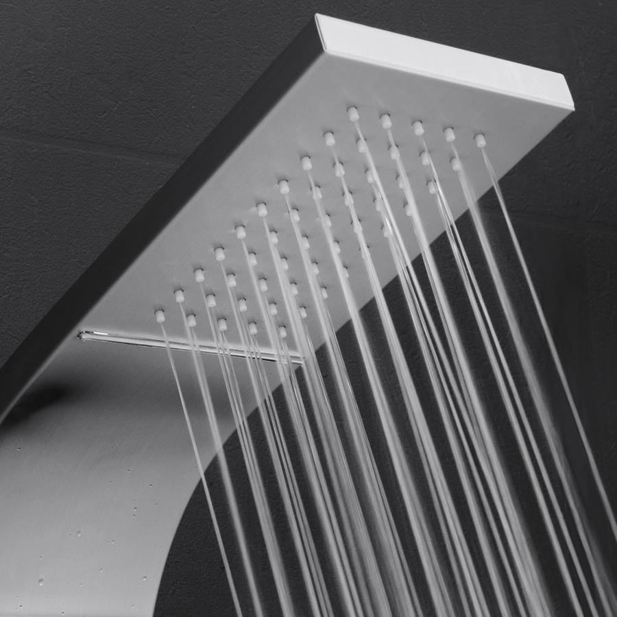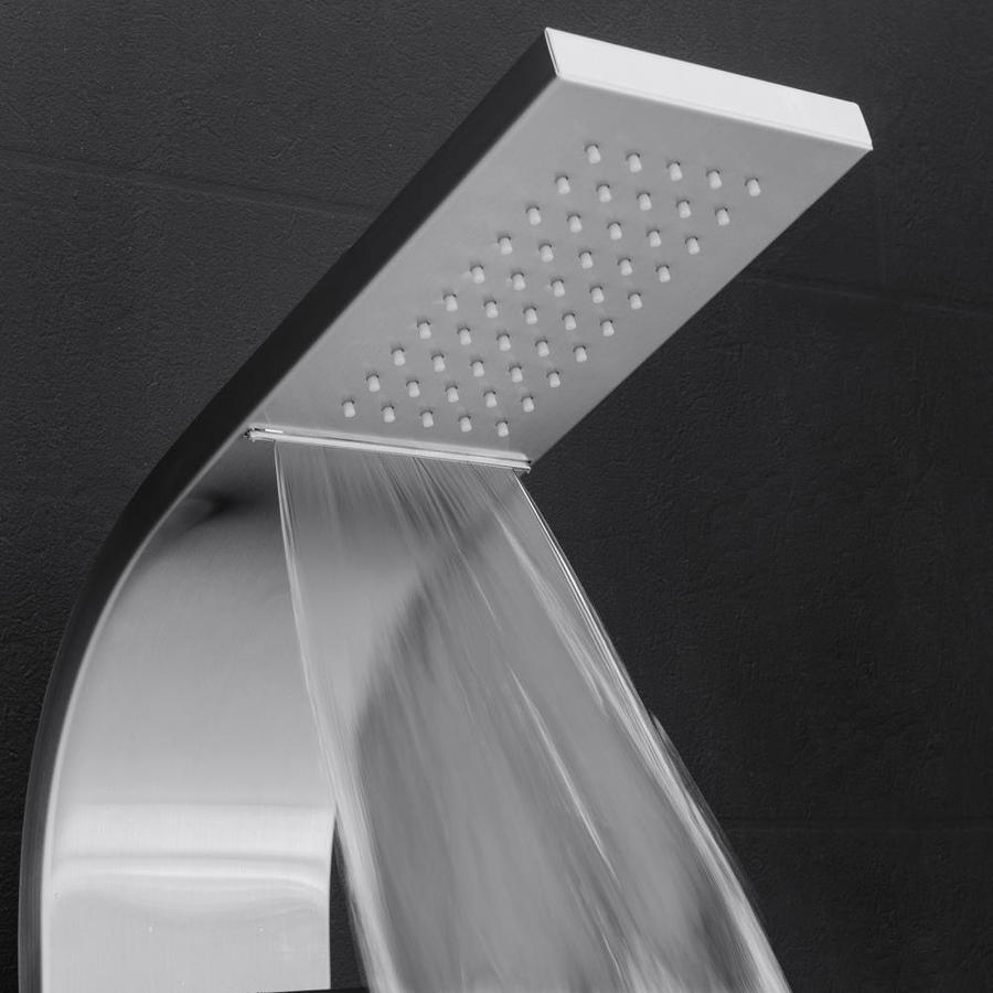 Slimline luxury shower panel has built-in rainfall waterfall showerhead, high-powered body spray jets, and high-efficiency handheld shower wand All shower functions work independently to maintain water pressure Uses Easy Connect System to seamlessly integrate with pre-existing water controls using your showerhead outlet Constructed of precision high-grade brushed stainless steel resistant to rust and corrosion Timeless and modern brushed finish minimizes water spots Easy Connect System simplifies and minimizes installation time for quick bathroom renovations using pre-existing showerhead outlet and temperature controls 1.8 GPM (gallons per minute) flow rate This product is installed with a flow restrict Due to statewide restrictions on water flow rates, we are unable to ship this product to California, Colorado, and New York