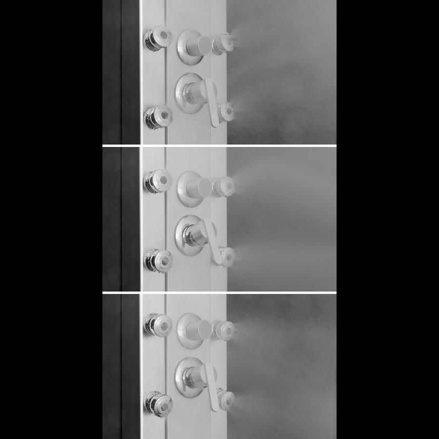 All-in-one shower tower system designed for wall mount installation without difficult plumbing or drilling