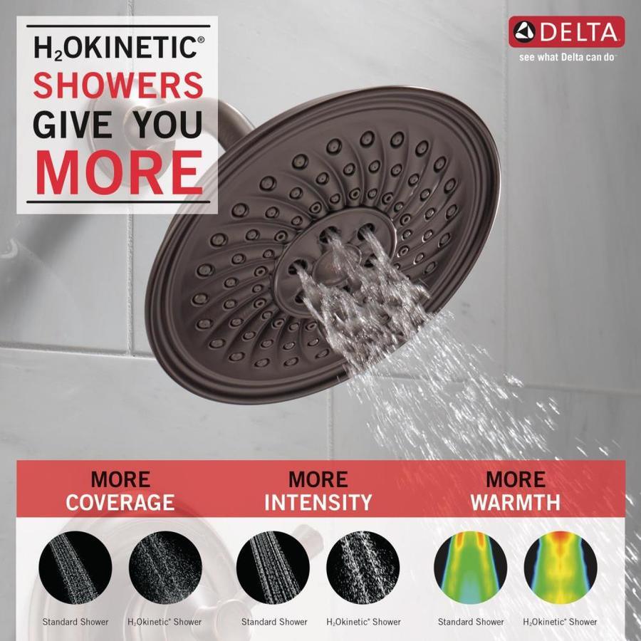 H2Okinetic Shower technology sculpts water into a unique wave pattern, forming a powerful drench spray
