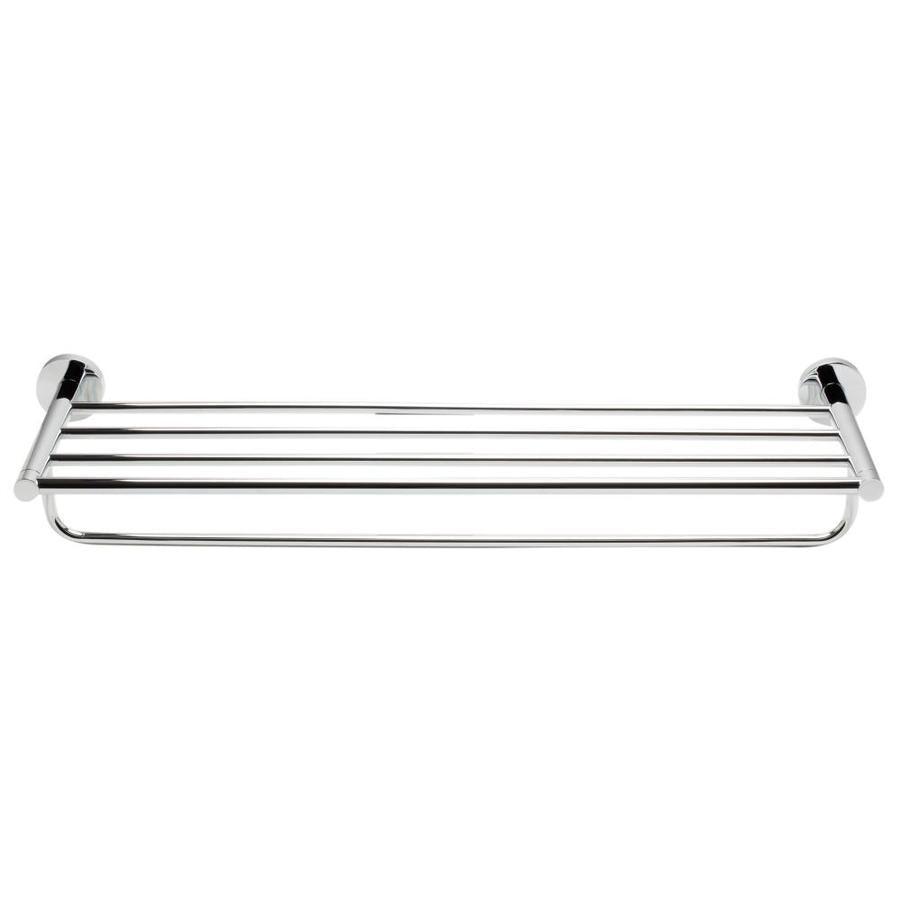 All in one towel rack/shelf + towel bar Coated with a Polished Chrome finish Expertly crafted solid brass construction for long-lasting durability Sleek design matches most dcor styles Concealed wall mounted installation keeps your bathroom aesthetics on point Superior finish is corrosion and rust resistant