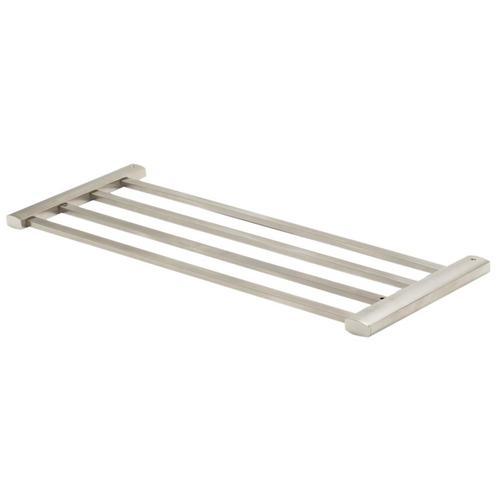 All in one towel rack/shelf + towel bar Coated with a Brushed Nickel finish Expertly crafted solid brass construction for long-lasting durability Sleek design matches most dcor styles Concealed wall mounted installation keeps your bathroom aesthetics on point Superior finish is corrosion and rust resistant