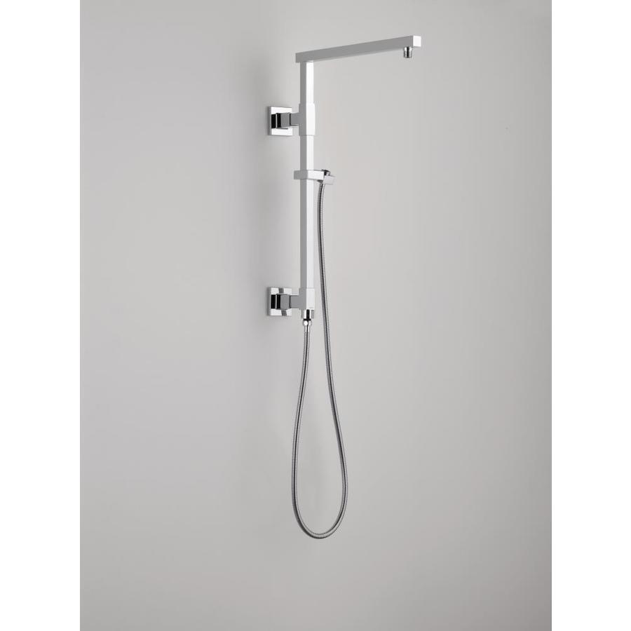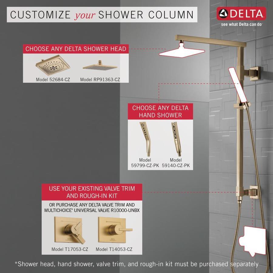 Designed for use with shower head and hand shower (both sold separately) Can be customized with any shower head and hand shower 3-way diverter allows for single or shared operation of the shower head and hand shower No need to alter plumbing behind the wall Consolidated installation footprint Retrofit exposed pipe shower No need for an additional supply elbow with the integrated hose supply 15-in overhead shower arm Adjustable hand shower mount allows the user to move the hand shower up and down the shower column