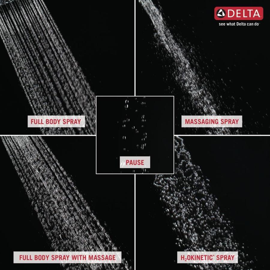 Spray settings include: H2Okinetic PowerDrench spray, Full Body spray, Massaging spray, Shampoo Rinsing spray, and Pause