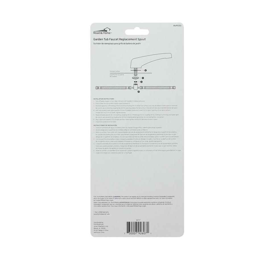 Road & Home Garden Tub Faucet Replacement Spout in Chrome Finish with Non Metallic Construction