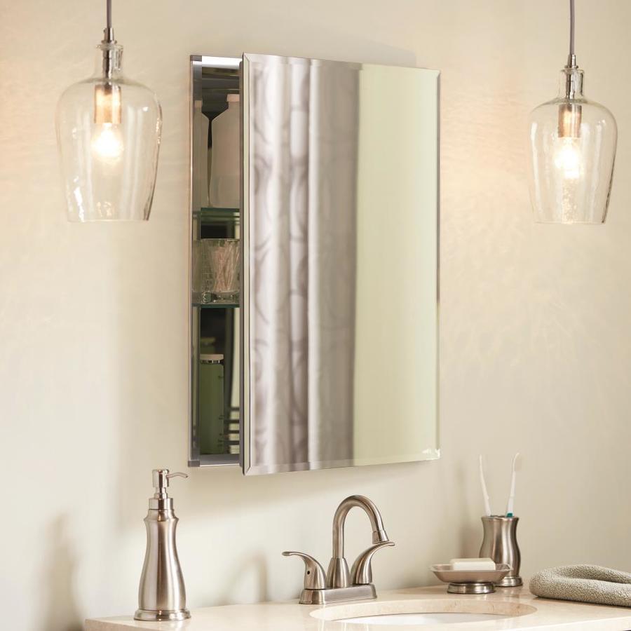 The 20 In. x 26 In. recessed or surface mount mirror medicine cabinet in frameless mirror with beveled edges design is a simple and stylish way to give your bathroom a warm and elegant look Has 3 adjustable glass shelves for storage of various sized items The door, with 110 degree soft-closing hinges design, is good for closing and opening the door without being noisy