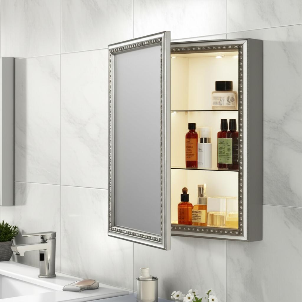 - Elegant Design: Features a bevel-patterned copper-free silver mirror for a refined aesthetic.