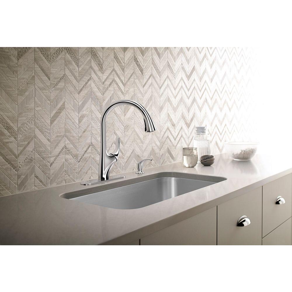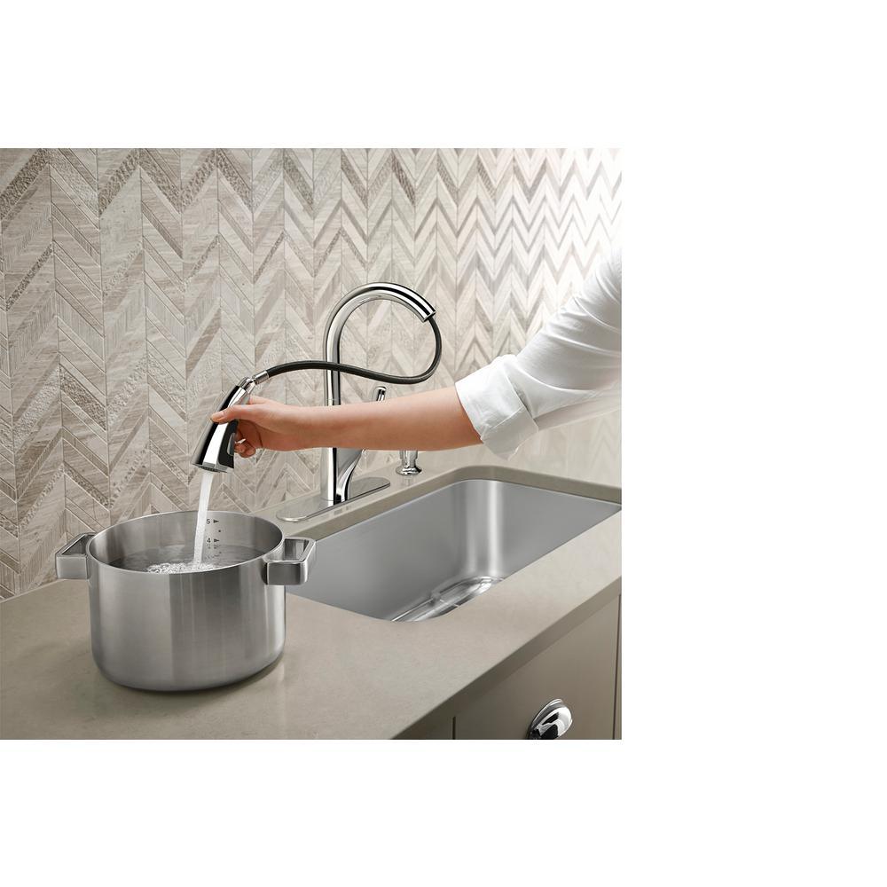 With subtle lines emanating from its handle, the Trielle pull out kitchen faucet brings a touch of glamour to contemporary design. DockNetik technology secures spray head in place through our signature magnetic docking system. Two-function spray head features stream and Sweep, a wide forceful spray that makes cleanup easier, to facilitate all the various tasks of the kitchen space.