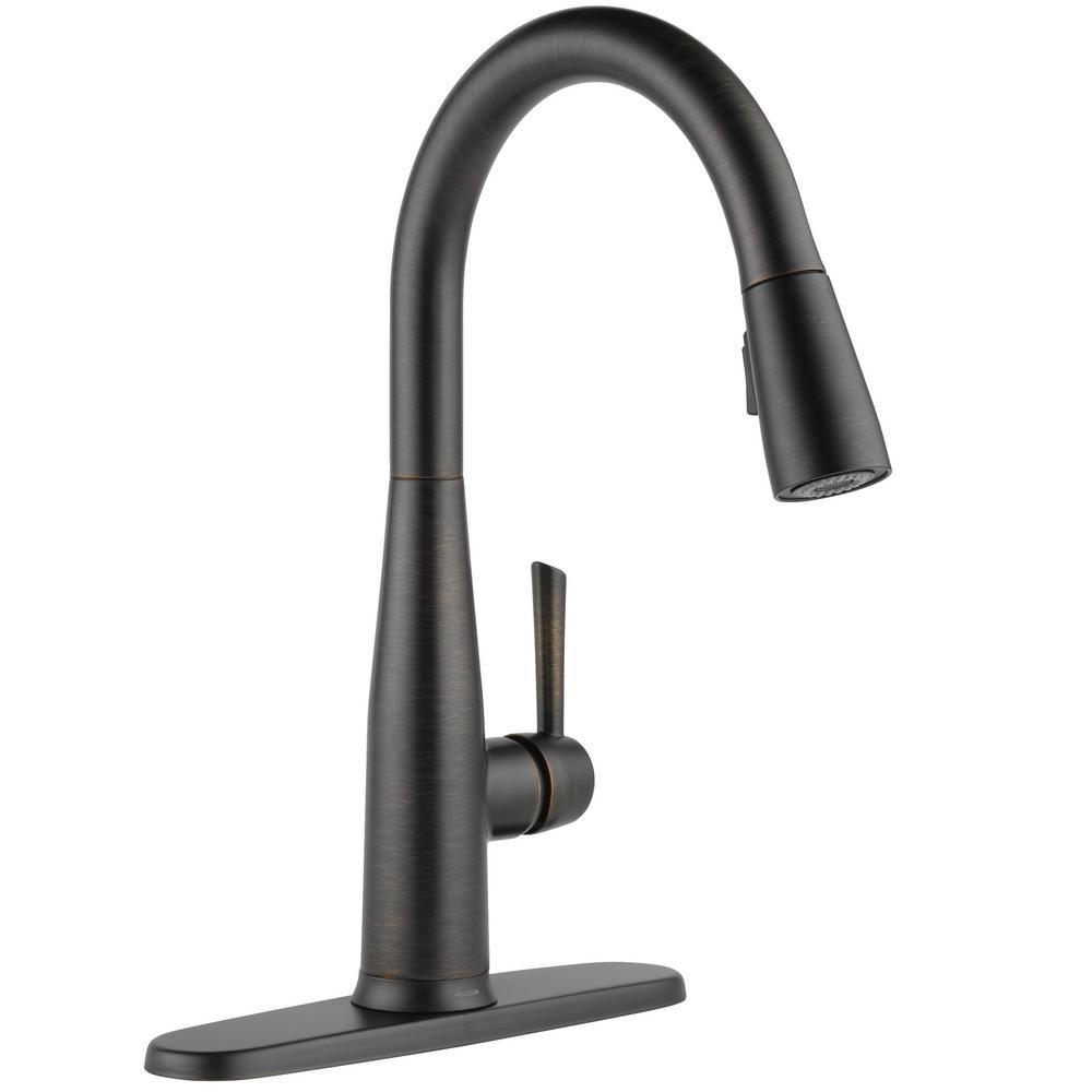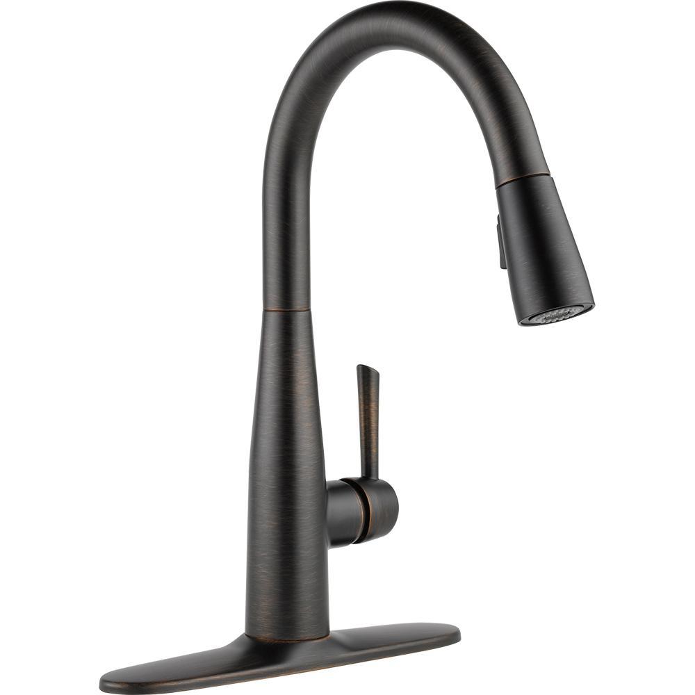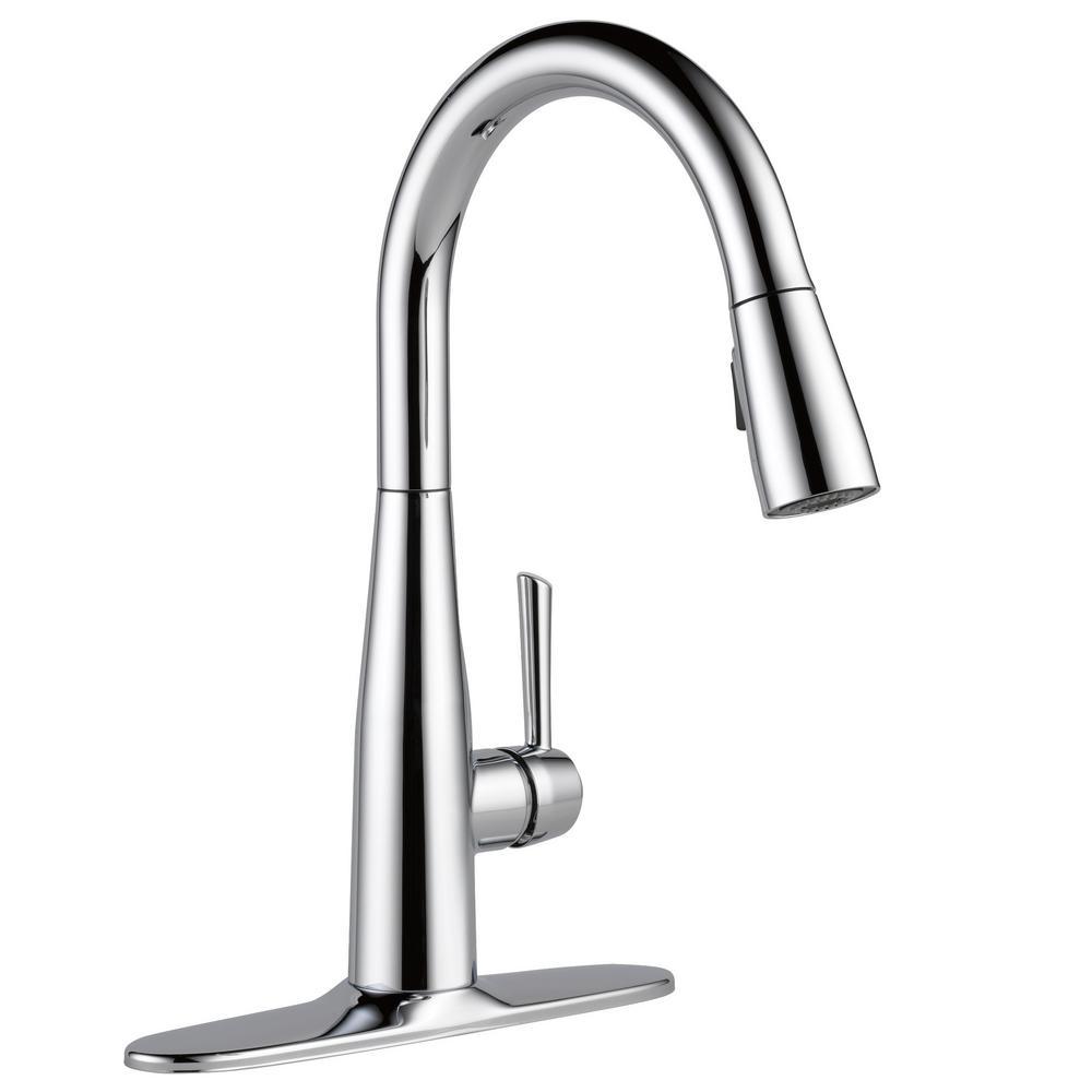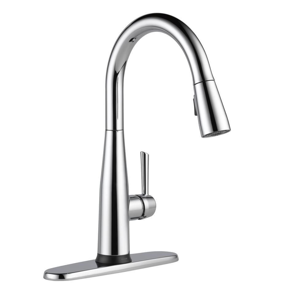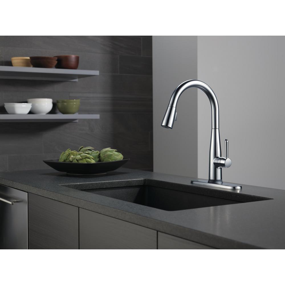 This Essa Touch2O Technology Single-Handle Pull-Down Sprayer Kitchen Faucet in Arctic Stainless with MagnaTite Docking features a soft contemporary take on a euro design, with contemporary and transitional elements. Thoughtfully designed to make kitchen tasks easier, Touch2O Technology allows you to turn the faucet on and off with just a touch anywhere on the faucet's spout or handle. Easily control and change the water temperature above the deck using the faucet handle. TempSense Technology measures the water temperature in the faucet. The LED light at the base of the faucet changes from blue to magenta to red depending upon the temperature of the water to let you know when the water temperature is right for you. A/C adapter EP73954 is available to purchase separately as an option to avoid changing batteries. Even if the adapter is used, batteries are still recommended as a back-up if power goes out. Once power is restored, the solenoid valve will automatically revert back to using A/C power. The pull-down spray wand comes free with a gentle tug and is fed by gravity to extend and retract without friction points. As you raise the wand to dock it, the magnet embedded in the spout pulls the wand precisely into place. MagnaTite keeps your pull-down faucet looking picture-perfect. Delta's exclusive DIAMOND Seal Technology uses a valve with a tough diamond coating.