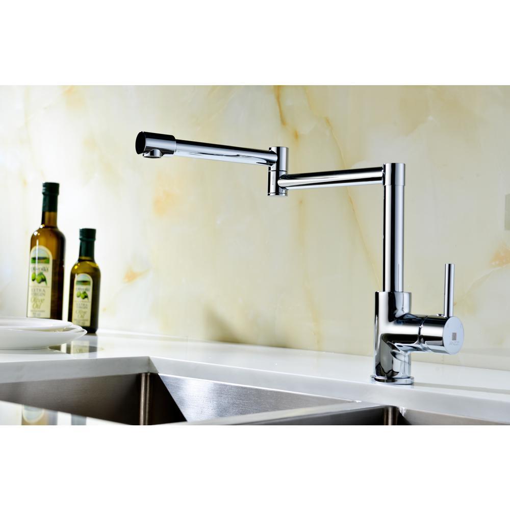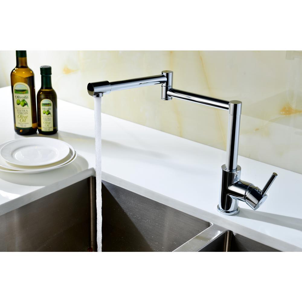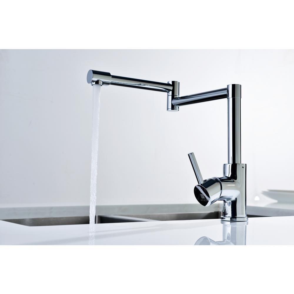 This single-handle articulating pot filler adds European flair to your kitchen design. It is highlighted by a Euro-grip sprayer that offers a full range of motions. Crafted with a traditional polished chrome finish, this rust-free kitchen faucet features a deceptively simple handle that allows you to easily control water flow and temperature. At the same time, it maintains a fine, minimalist aesthetic that blends with any modern or contemporary style. This pot filler is made with high-quality materials, ensuring you enjoy a flawlessly performing faucet for years. It is meant for 2-hole, deck-mounted installation. Simple to use, this piece is listed certified under CUPC, AB 1953, NSF for installation within North America.