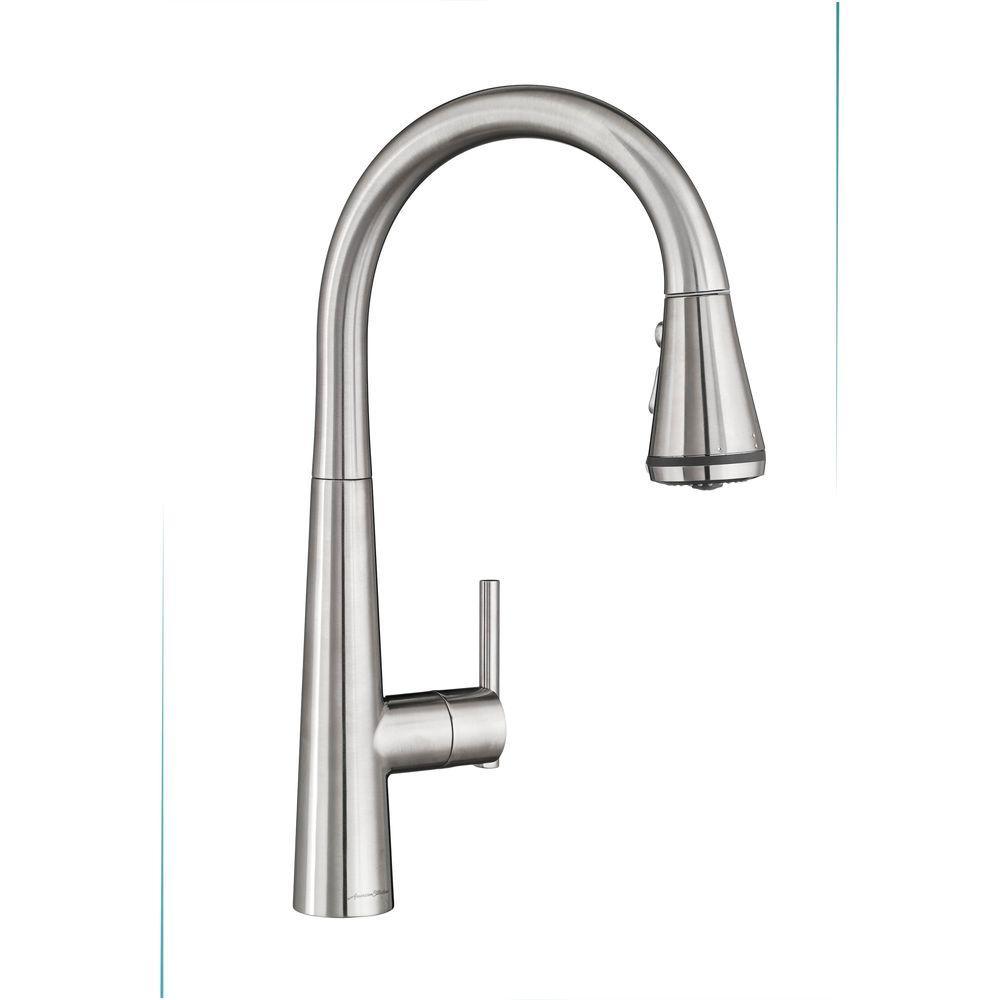 The Edgewater Pull-Down Kitchen Faucet was created with a beautiful high-arc design and features a SelectFlo 4-function spray with pause, allowing you to choose between Stream, Spray, Mist, and Jet options to help you with a multitude of tasks. A Dock-Tite spray head docking system uses magnetic technology to secure the spray head in place when it's not in use, and the Re-Trax retraction system ensures a smooth pull-out, use, and retraction of the spray head. This lead-free faucet includes our ceramic disc valve cartridge technology for a lifetime of drip-free and maintenance-free performance.