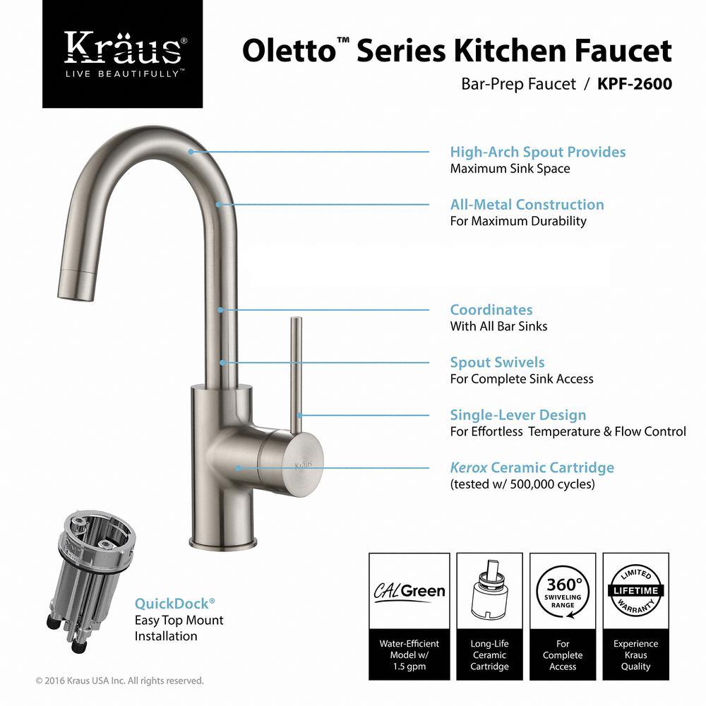 With clean minimalist lines and exceptional ergonomics, the KRAUS Oletto Series embodies the simple elegance of modern kitchen design. To fit any kitchen sink, Oletto is available as a pull out, pull down, commercial kitchen faucet, and bar faucet. This faucet provides exceptional quality that will last.