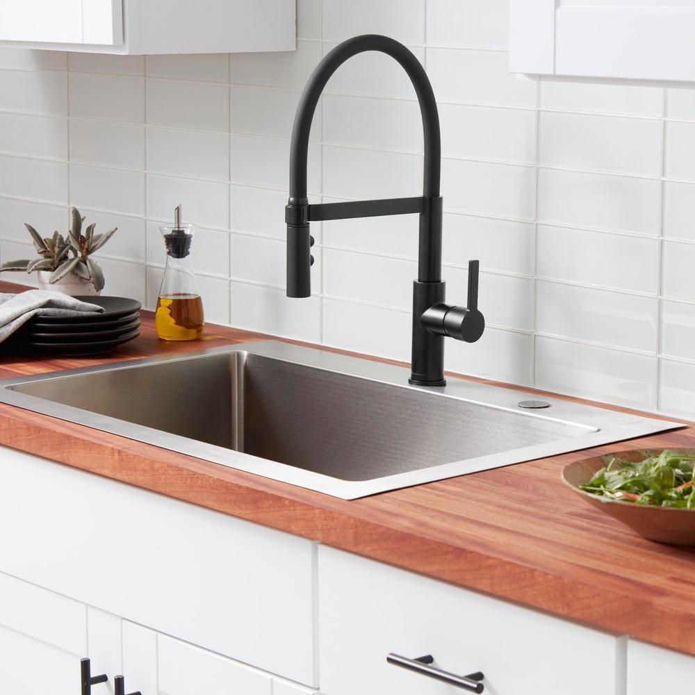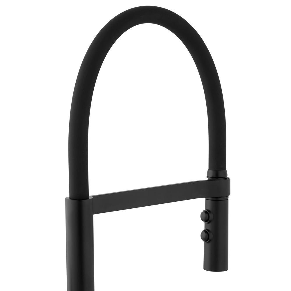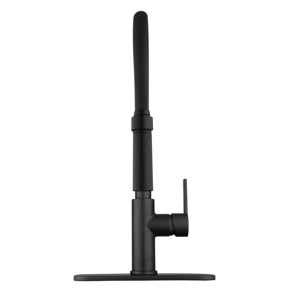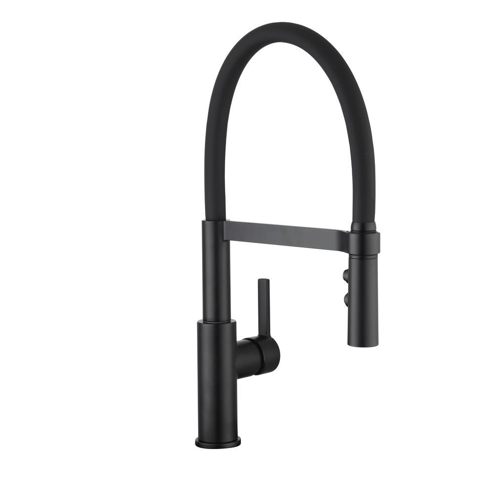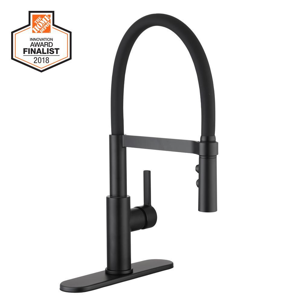 Statham Single-Handle Rubber Hose Spring Neck Kitchen Faucet with TurboSpray and FastMount in Matte Black