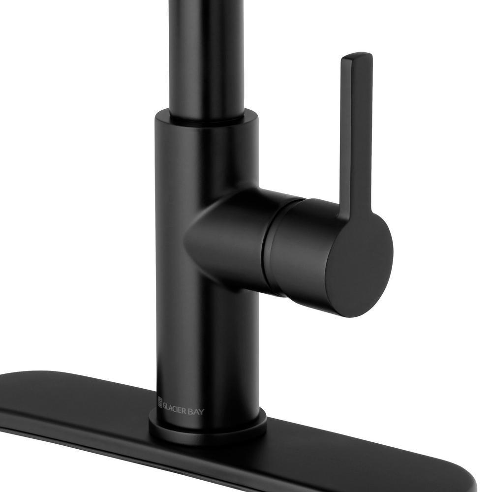 The Glacier Bay Statham Single-Handle Rubber Hose Spring Neck Kitchen Faucet in Matte Black is a stylish modern faucet with unmatched style and functionality. Easy-to-use with a single handle design, this faucet has a convenient spray wand with 2-spray modes. The sprayer features an aerated spray and a new TurboSpray that is exclusive to Glacier Bay. The TurboSpray from Glacier Bay provides a stronger spray pattern than your standard pull-down faucet. Featuring a ceramic disc cartridge for drip free performance and a 1.8 GPM flow rate, this kitchen faucet also includes the exclusive FastMount mounting system to make installation quicker and easier.