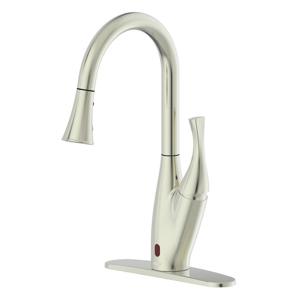 The Flow X Series Motion Activated Kitchen Faucet is the latest entry in the Flow series of essential kitchen upgrades. Featuring a redesigned body with refined curves and an elegant profile, the Flow X instantly becomes the centerpiece of every kitchen. Easily turn the faucet on and off by activating the hands-free motion sensor, or use the exclusive SmartLatch function to automatically start and stop the flow of water when the faucet head is pulled down or retracted. Each faucet features a sure-fit valve system for reliable water flow and long-term durability. The faucet head offers two useful spray patterns, and the aerator has been carefully crafted to provide an effective stream of controlled water. Choose between three luxury finishes with PrintProof Technology: Brushed Nickel, Chrome, and Oil Rubbed Bronze. The Flow X is designed for an easy DIY install that doesnt require any hardwiring. Simply set up the battery powered control box and insert the quick-connect hoses. The impressive battery life allows the Flow X to operate throughout the year, even during a power outage.