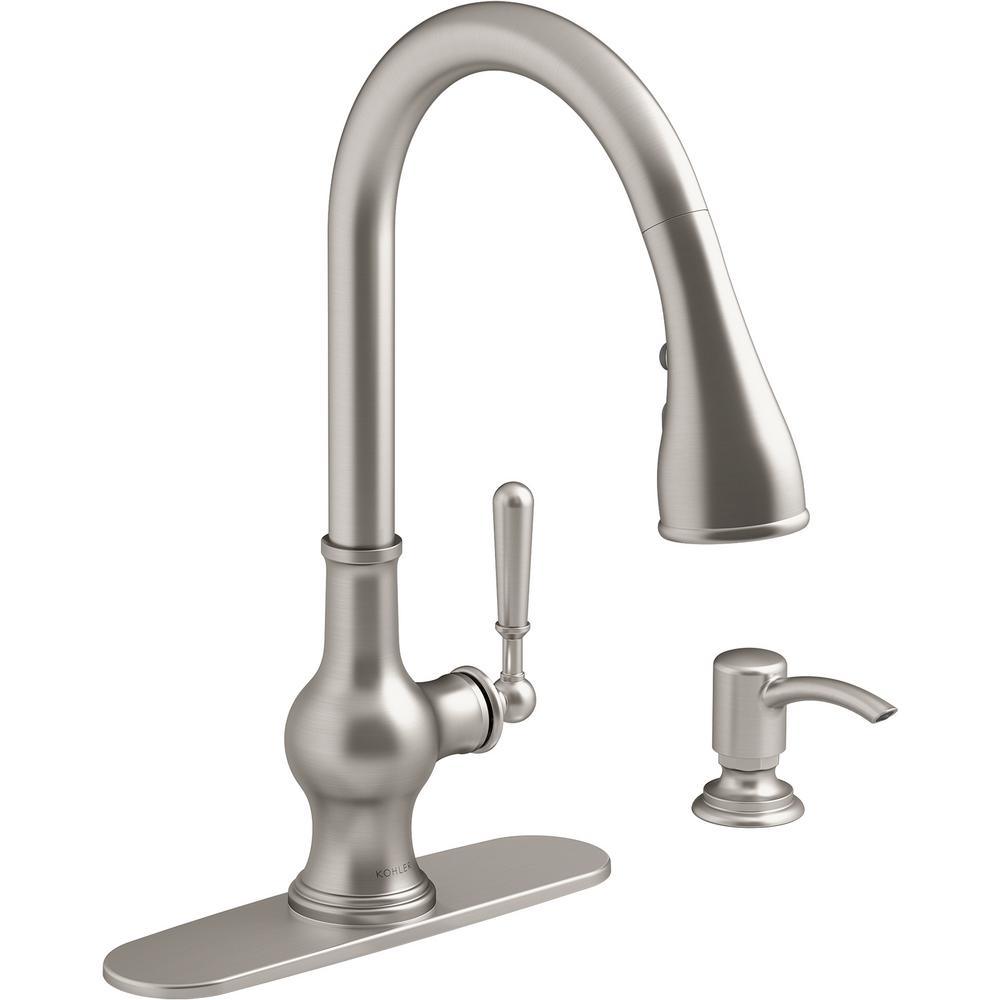 A fresh take on classic faucets, the Capilano kitchen faucet references an era of design known for durability, functionality and efficiency. Authentic detailing throughout shows a rich historical influence, while the high-arch spout provides ample space for all of today's kitchen tasks. The pull-down sprayhead featuring Boost technology increases the flow rate by 30% with just a press of a button.