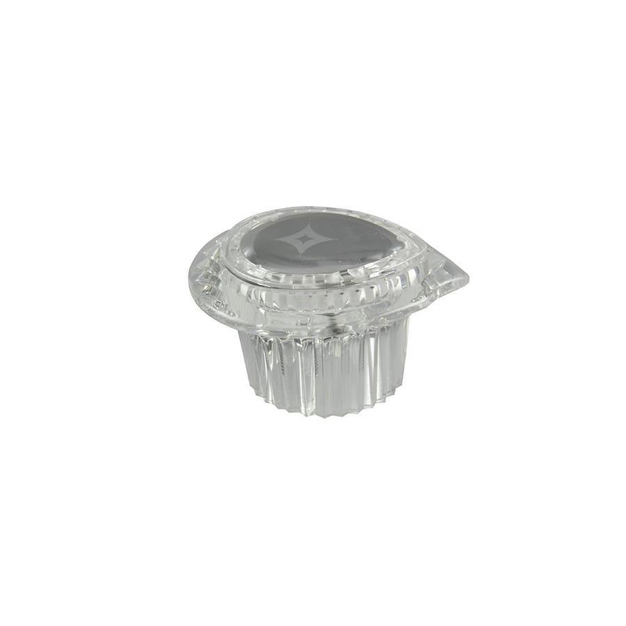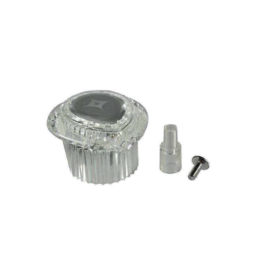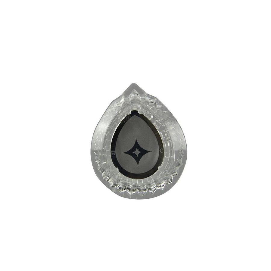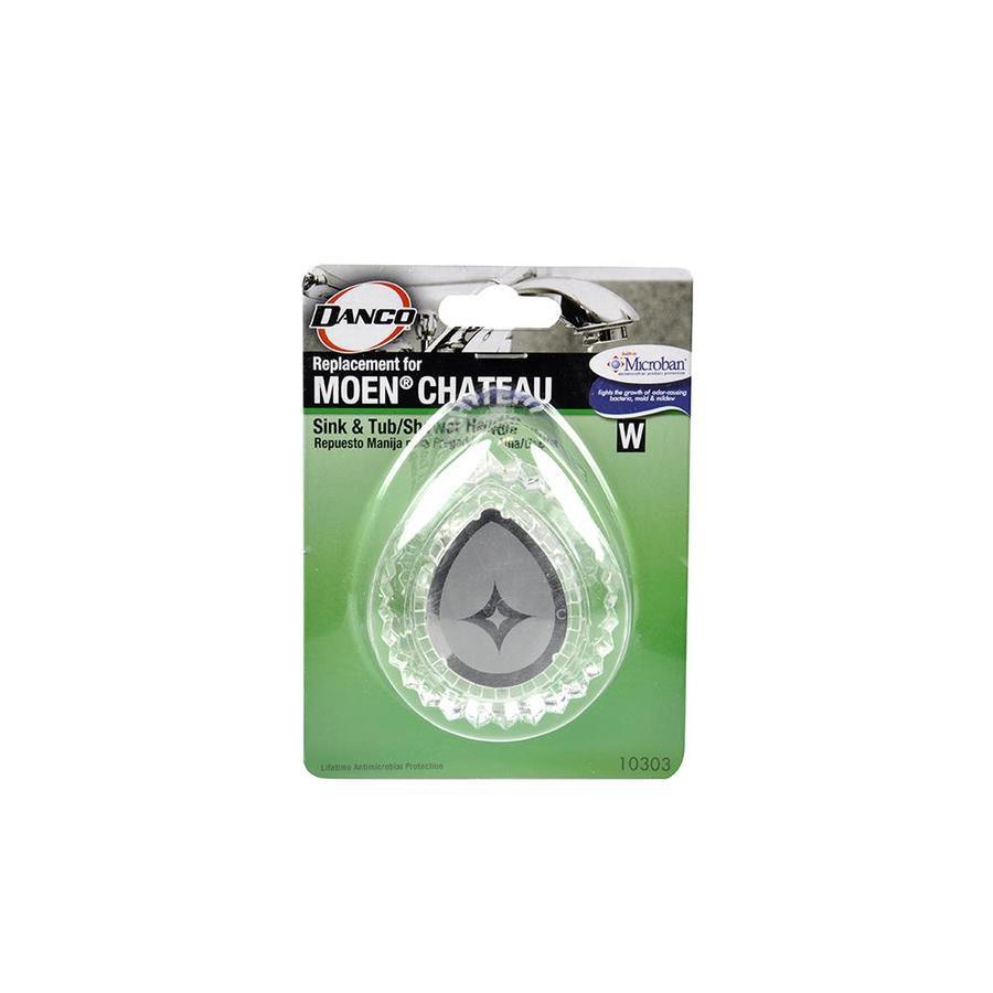 Replacement handle for Moen Chateau single knob handles Fits bathroom either sink or tub/shower faucets Hot and cold graphic conveniently indicates the temperature mix Stylish teardrop shape Compares to Moen 96782/96797 (not included) 1-11/16 inch diameter at base; 1-3/4 inch height Durable acrylic construction with a clear finish for a refreshed look Brand-specific fit handle for an exact match Easy to install with little tools required