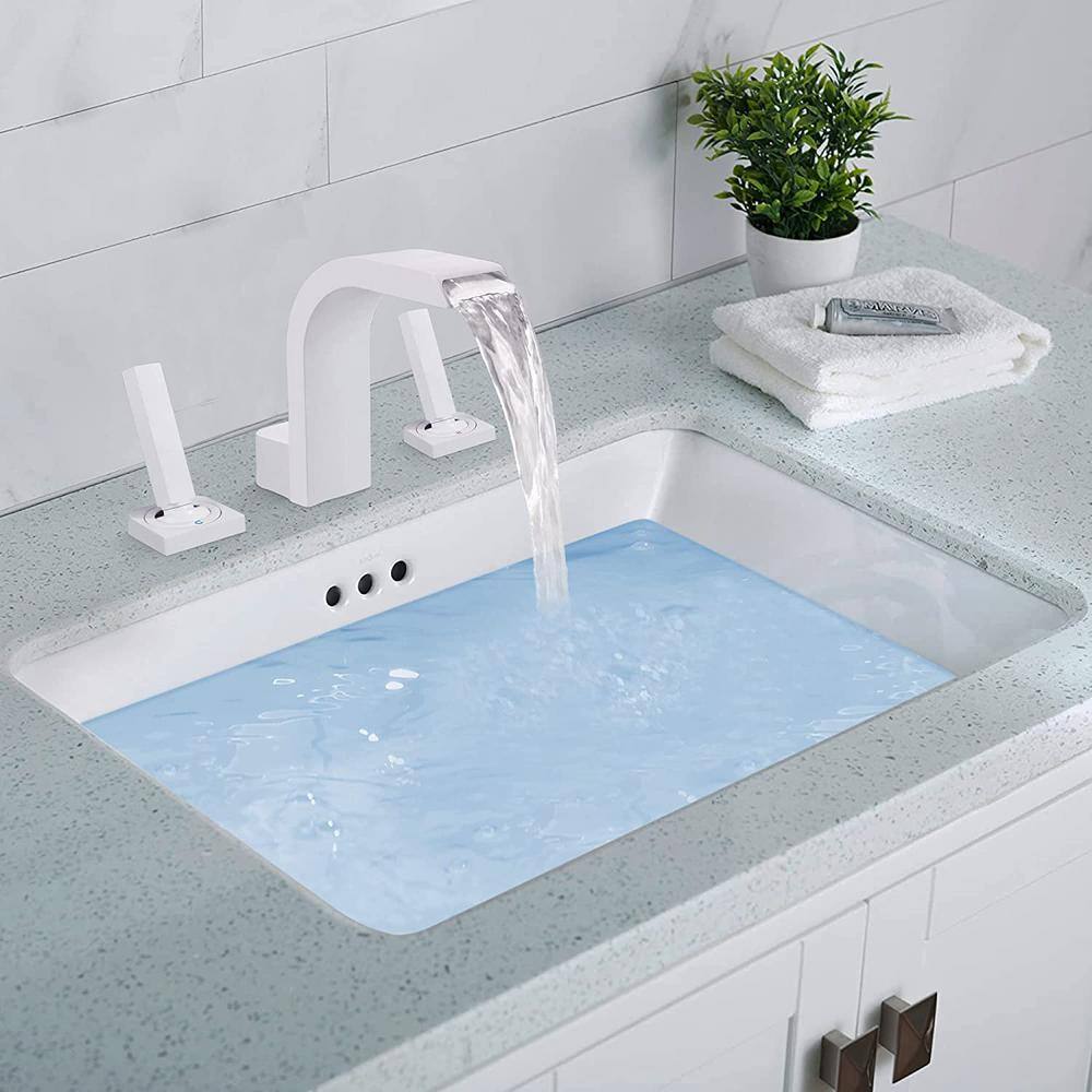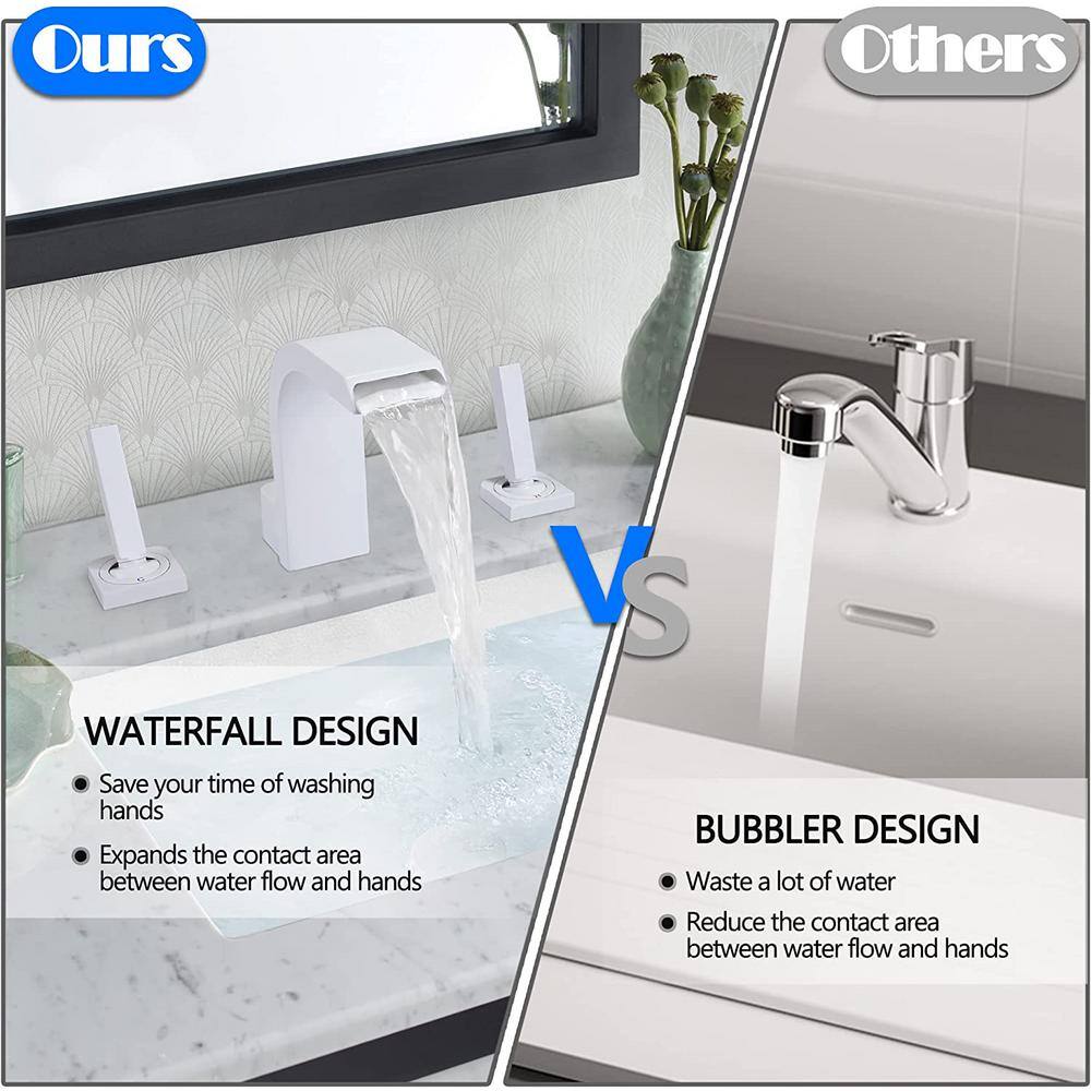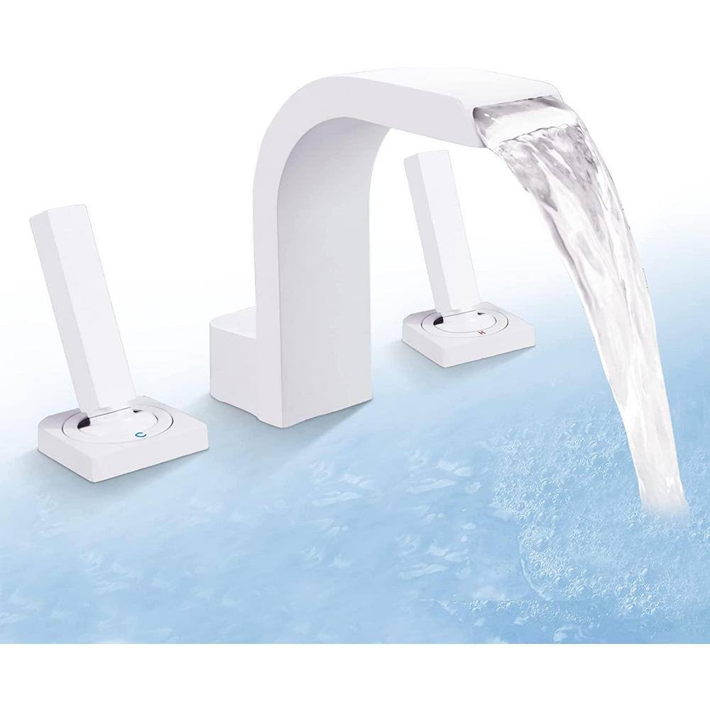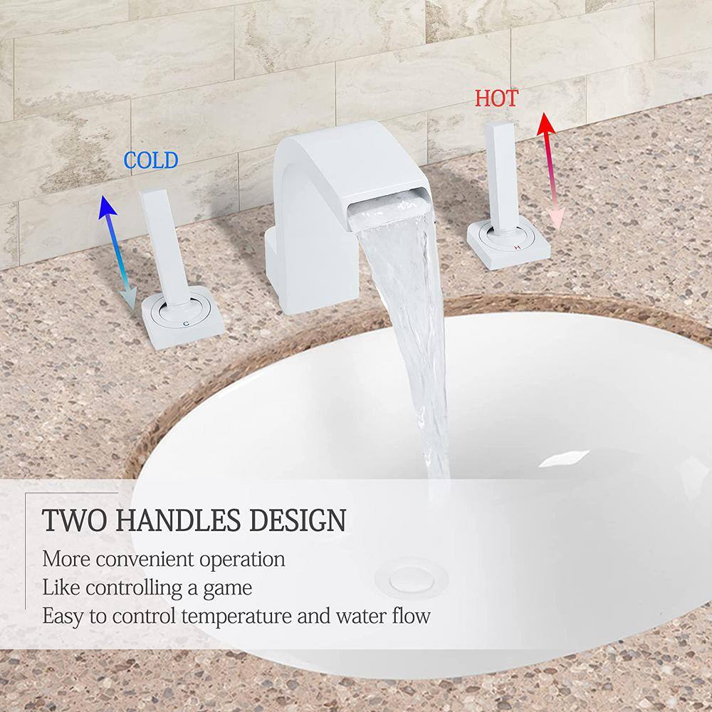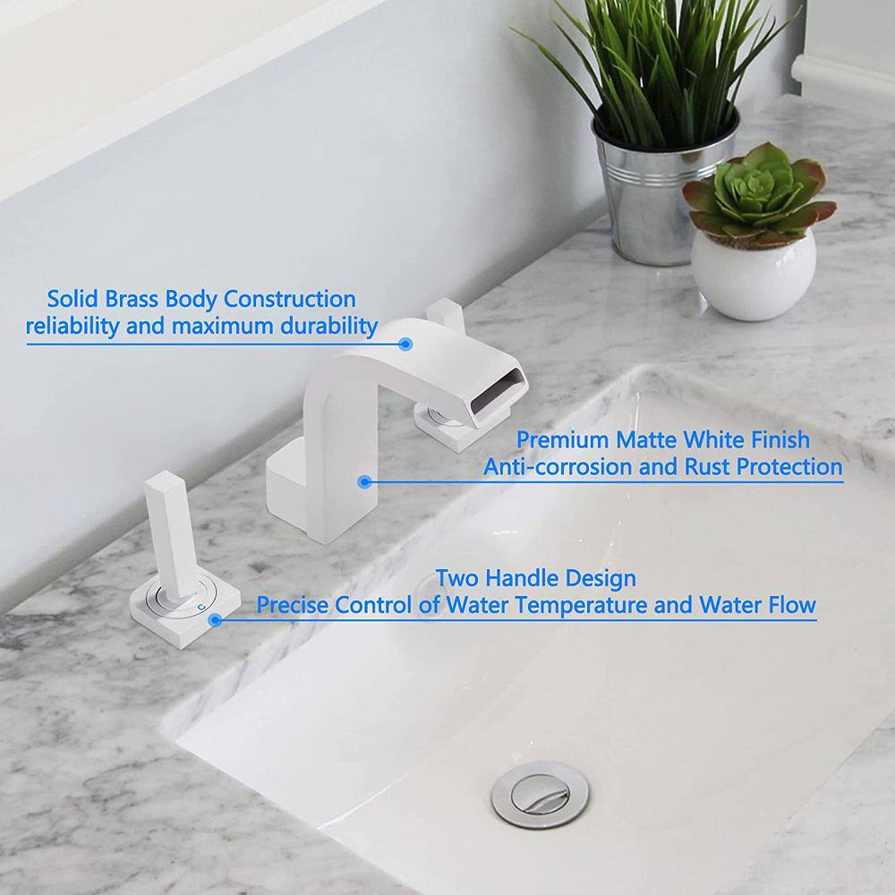 Upgrade your bathroom with this elegant double handle bathroom sink faucet, expertly crafted from durable brass for long-lasting use. Its modern square design, finished in crisp white, seamlessly blends with any decor, offering a sleek and functional enhancement to your space. Perfect for a 3-hole deck mount installation, it ensures a flow rate of 1.5 GPM for efficient water conservation.
