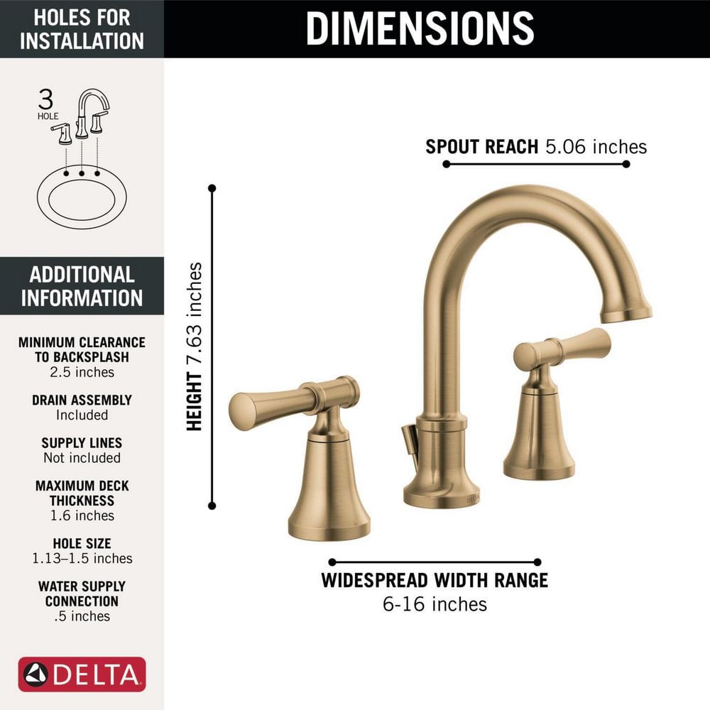 A: The Delta Chamberlain faucet offers a simple, DIY installation process with a quick-connect hose that clicks when connected properly. The faucet is designed for 3-hole 6-16 in. widespread installations.